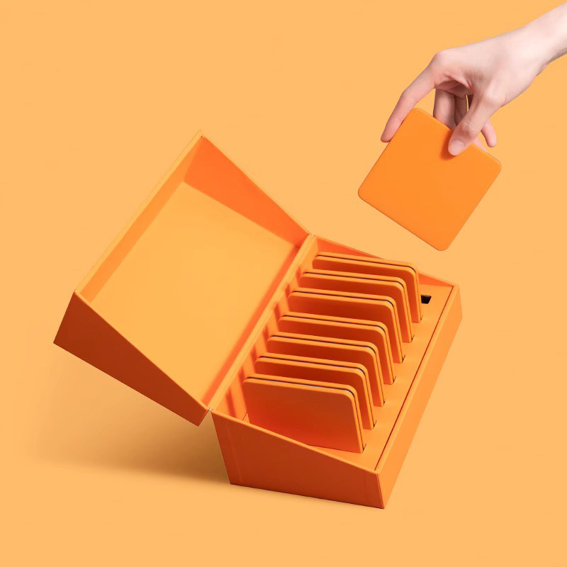 Orange lined with rice white lined with dark grey lined with orange 8 pieces of clothing rice white 8 pieces of dark grey 8 pieces of orange small square piece of rice white small square piece dark grey small square piece