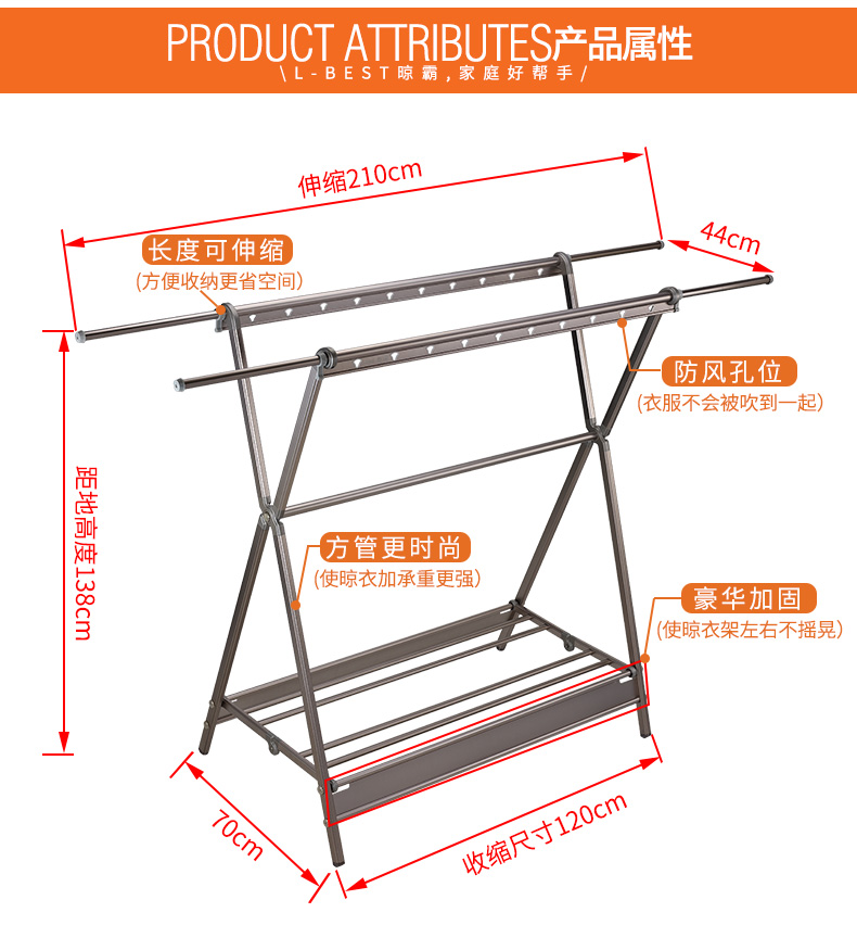 Clotheshorse removable telescopic folding balcony clotheshorse L05-120-Taobao
