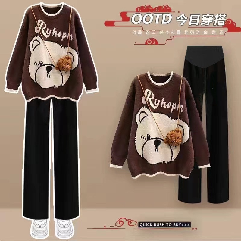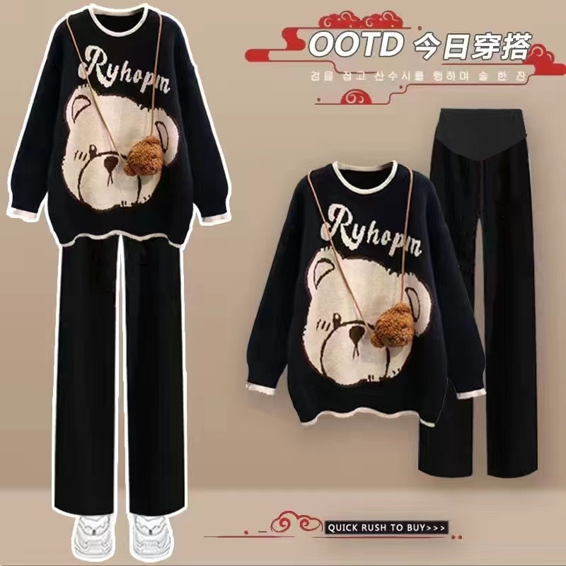 Pregnant women's autumn clothing suit 2023 new cartoon cubs loose foreign air weight reduction sweater Two sets of pregnant women autumn and winter money-Taobao