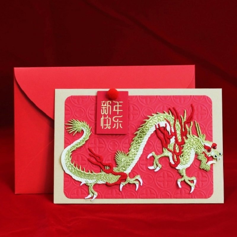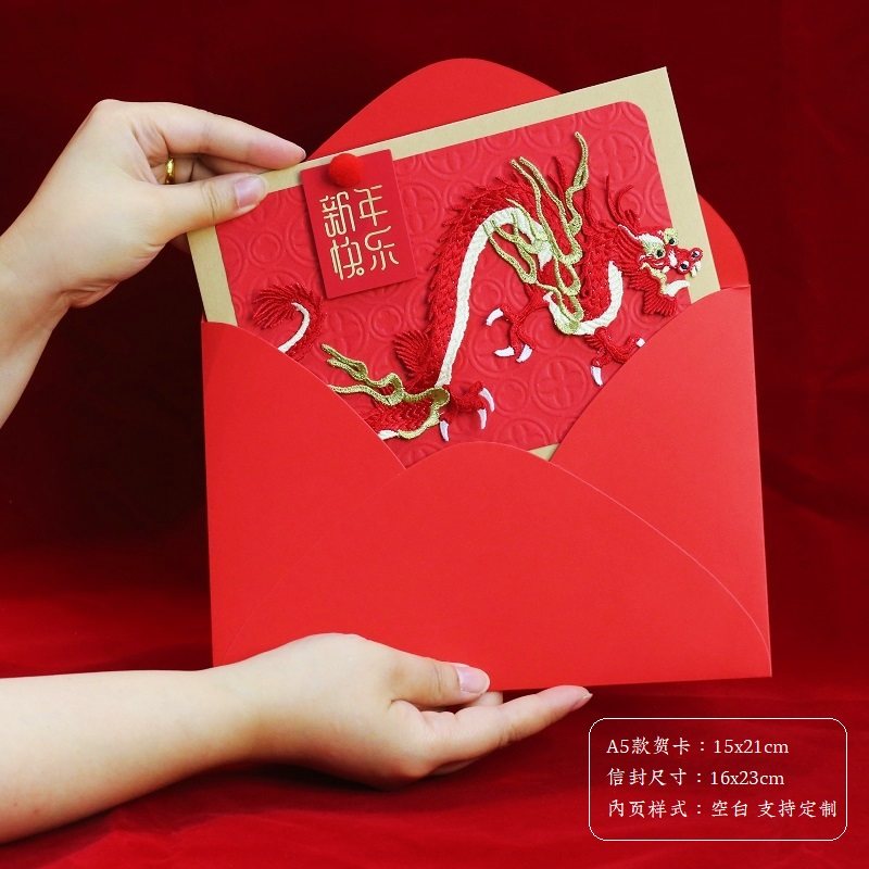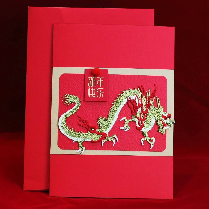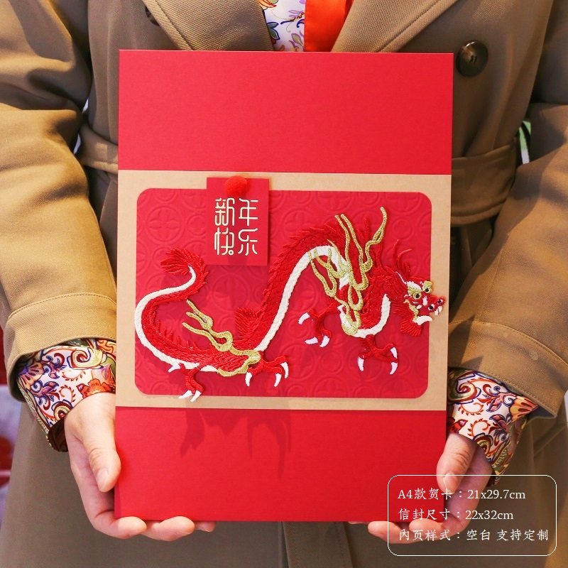 Embroidery Dragon Greeting Cards New Year Wedding Birthday Retirement Foshou Gift Custom Advanced Feel Creative Classical Chinese Style Wind C-Taobao