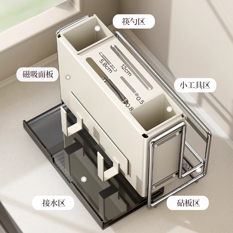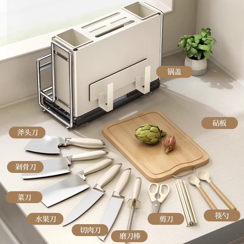 Tool holder Multi-functional kitchen table top chopstick cage cutter integrated wall-mounted chopping block lid accommodating shelf 2479-Taobao
