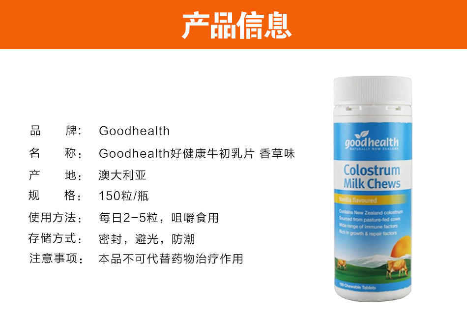 New Zealand Goothealth Good health cow colostrum 150 slices of strawberry vanilla taste high calcium high protein universal