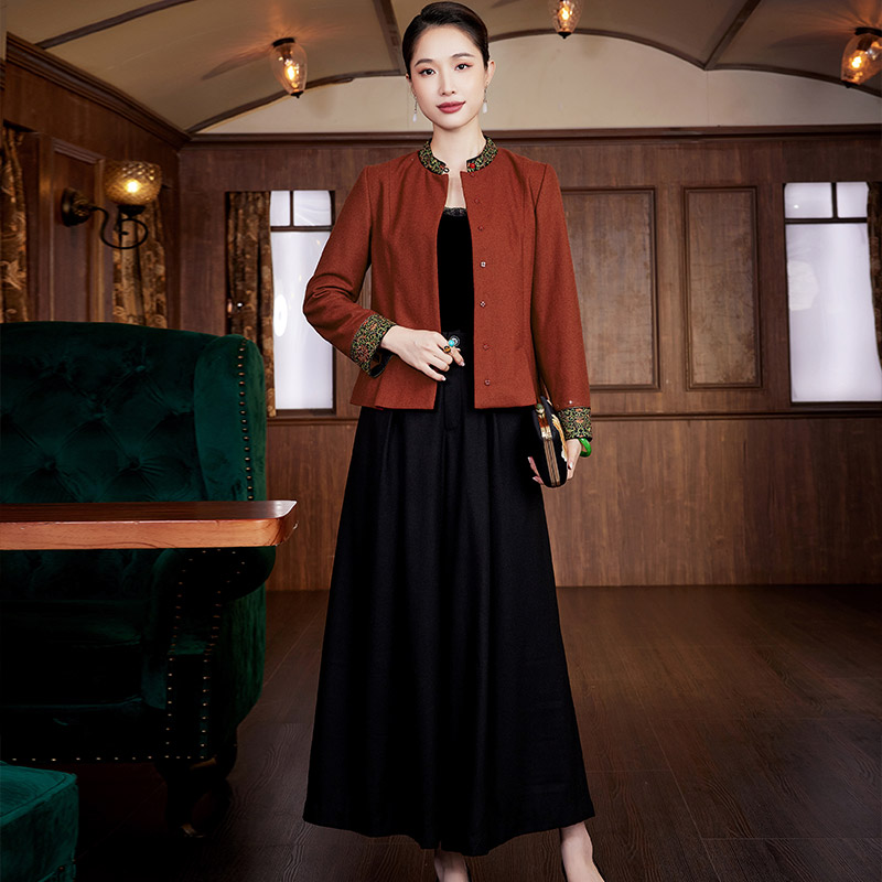Xi Yue Winter China Wind Classic Embroidered Wool Embroidered Tang Dress Blouse Red New Chinese Retro Style Jacket-Taobao