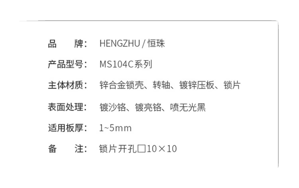 Hengzhu Cabinet Lock MS104C-1-1 Distribution Cabinet Lock Control Box Lock Flat Lock Electric Cabinet Long Door Lock