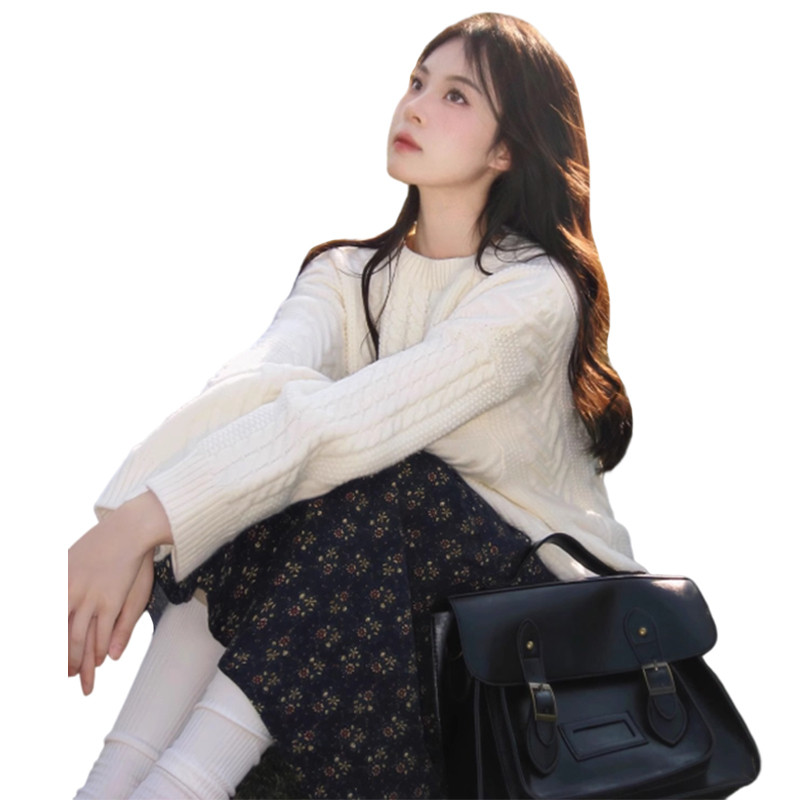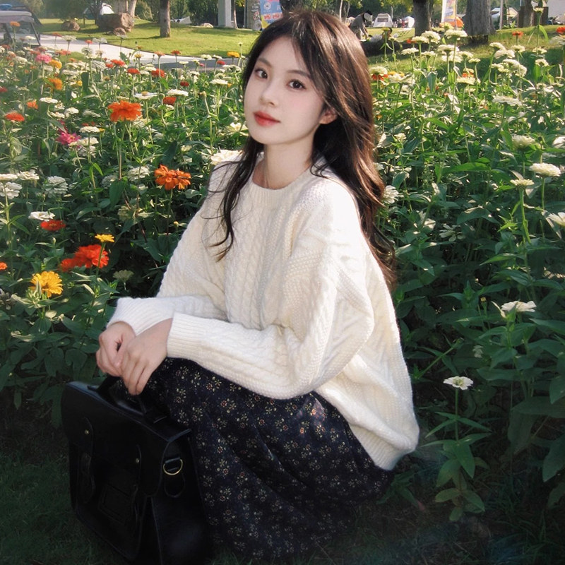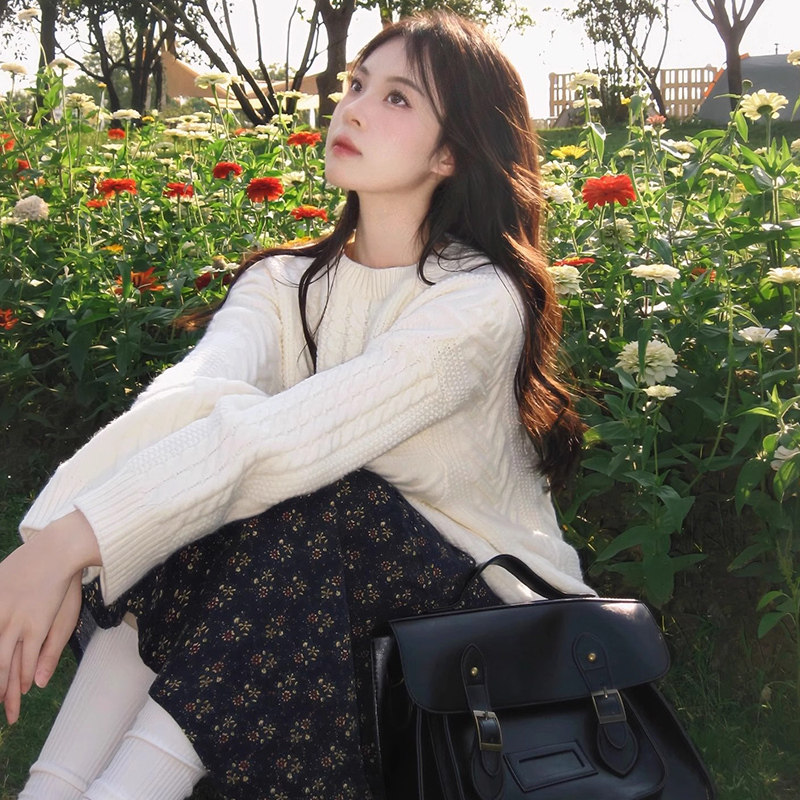 (beiwhite) (sweater woman's 2023 new winter sweater women's winter design sense sweater advanced sensation super-looking sweater white sweater sweater sweater for autumn and winter)