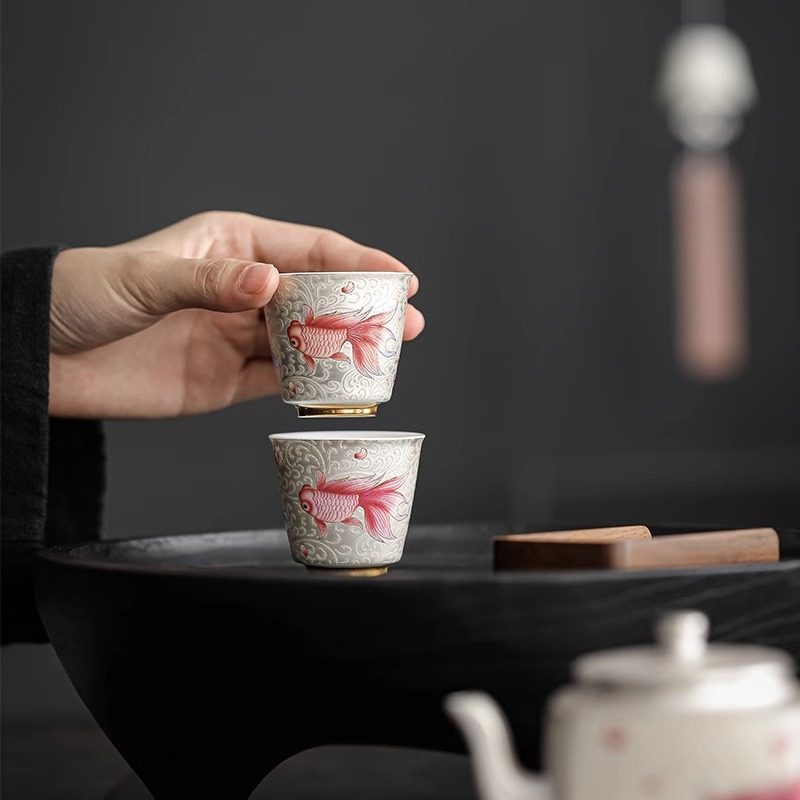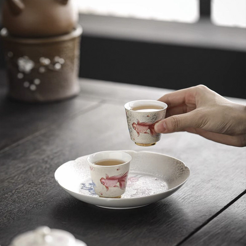 Pure Artisanal Pinch Silver Tea Cup Enamel Color ceramic Master's cup Home Silver Tea Cup High-end Kung Fu Tea With Tea Cup-Taobao
