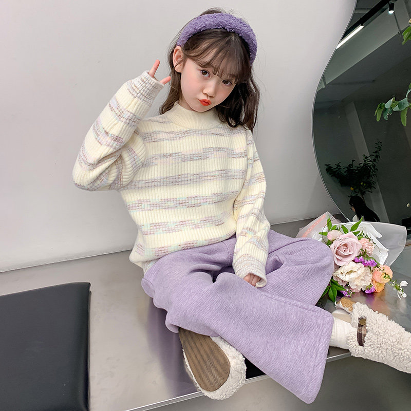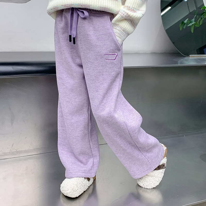 Girl Winter Clothing Plus Suede Pants 2023 New Ocean Gas Children Autumn Winter Style Casual Pants Little Girl Thickened Winter Tide-Taobao