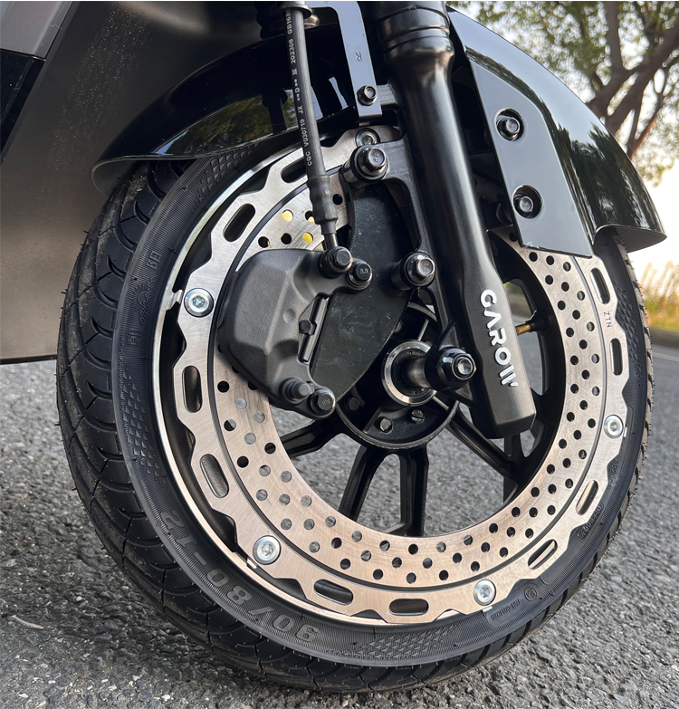 The front and back disc brakes.