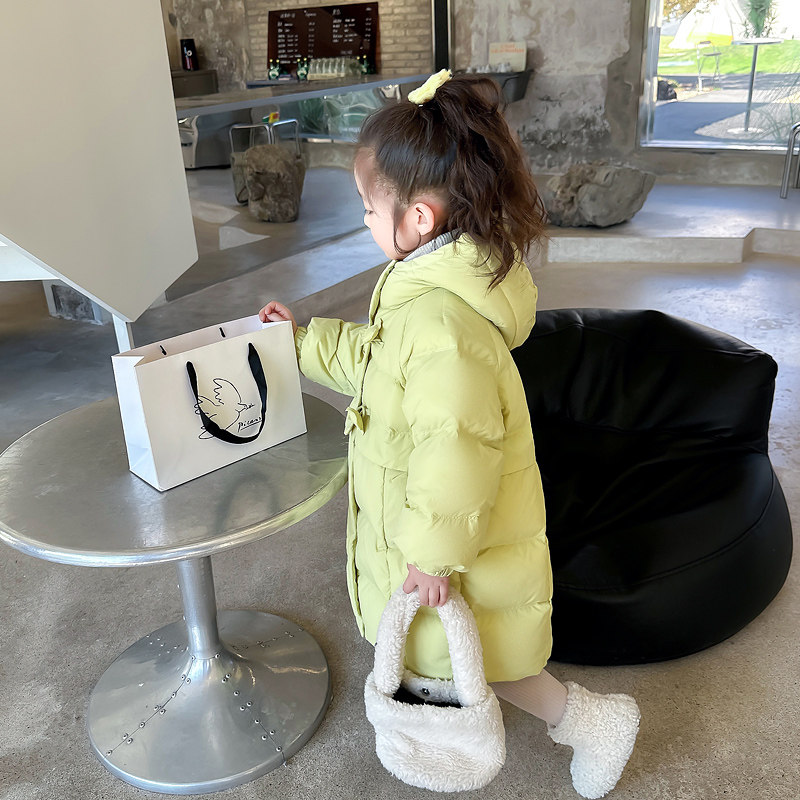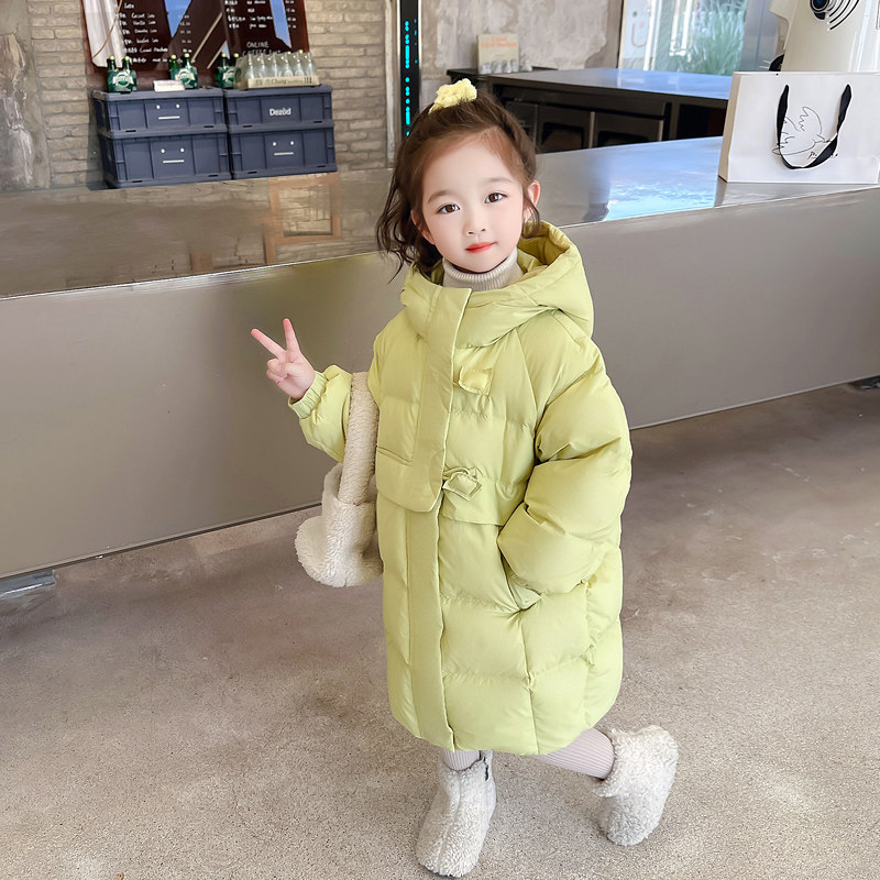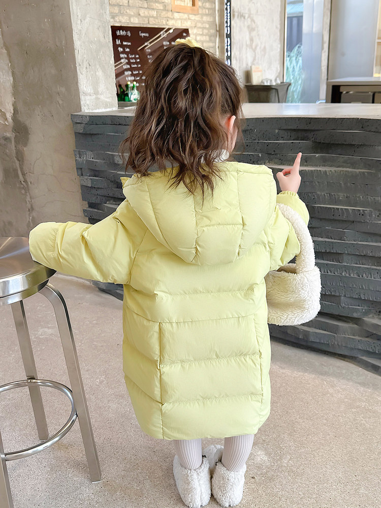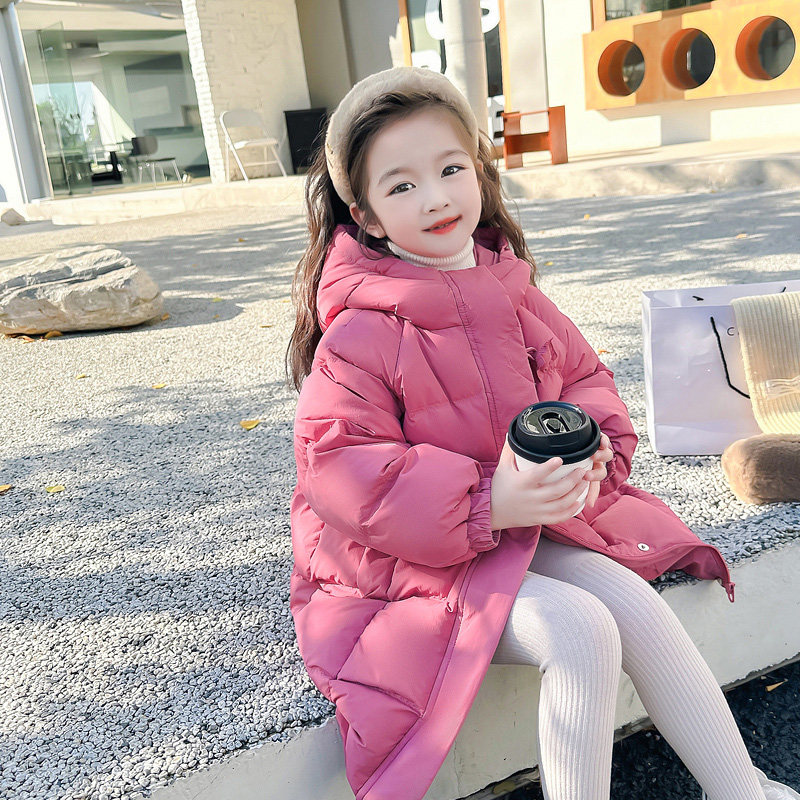 Long winter clothing in girl's down jacket 2023 new ocean gas thickened 90 white duck suede Three-proof warm even hat jacket-Taobao