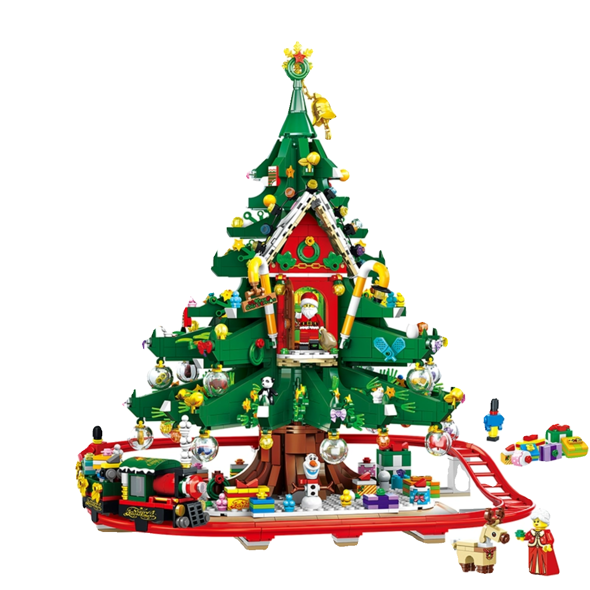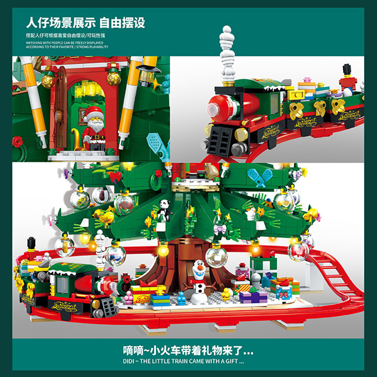 Twin Elephant Building Blocks Christmas Presents Christmas Tree Hut Swivel Track Small Train Male Girl Puzzle Assembly Toys-Taobao
