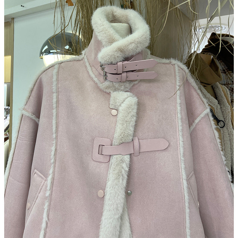 2023 WINTER SEASON 2023 LOCOMOTIVE CLOTHING PINK LAMB WOOL COAT FEMALE LEATHER HAIR INTEGRATED PLUS SUEDE COTTON SUIT COAT BLOUSES-TAOBAO