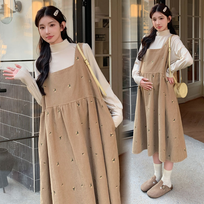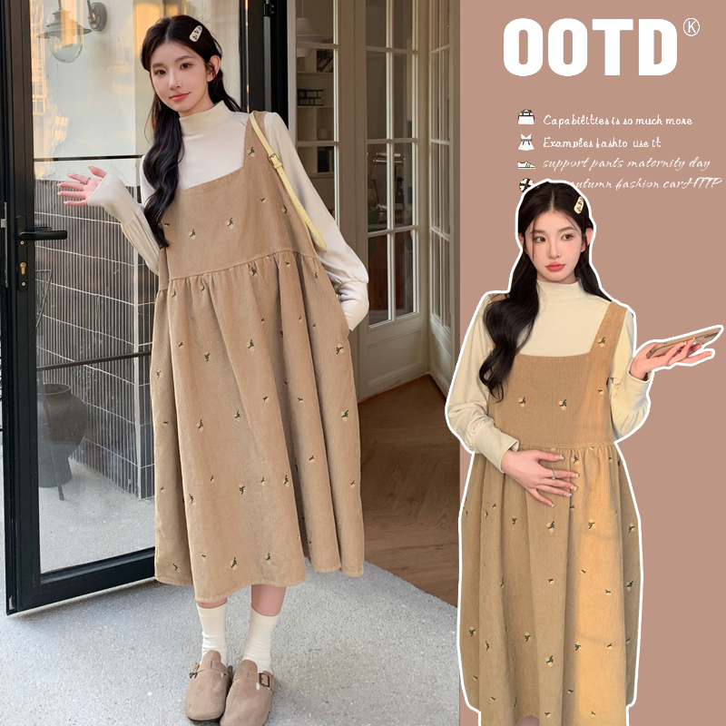 Pregnant woman Autumn winter clothing 2023 new suit Fashion French style one-piece dress autumn winter blouse dresses Two sets-Taobao