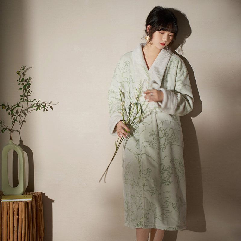 Mark Princess Pyjamas Pyjamas Pyjamas Women's Winter Coral Suede Thickened Garnter Bathrobe Qipau Flannel Velvet New Chinese Style Home-Taobao