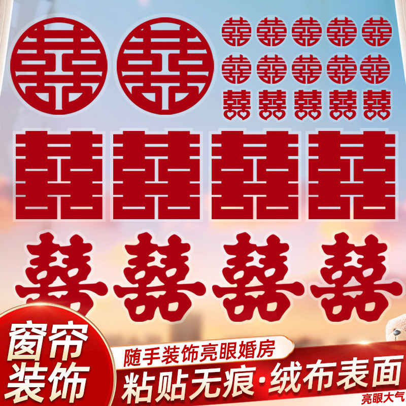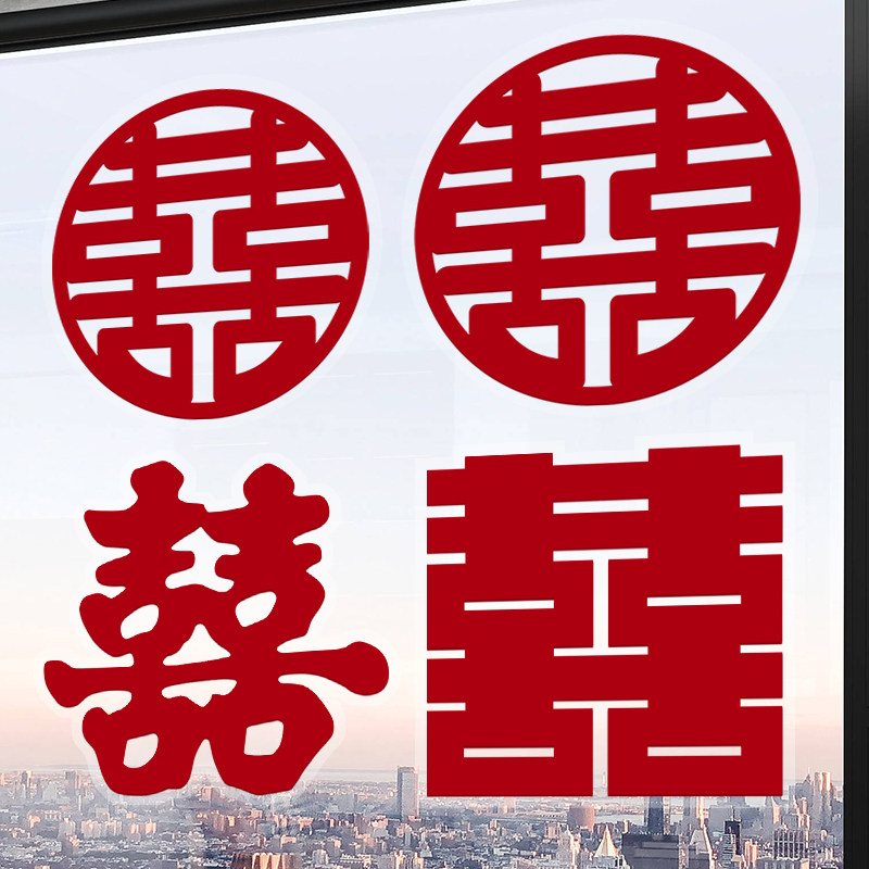 Xi-word wedding special static sticker window wedding house arranged with wedding word for wedding special glass living room Chinese character decoration-Taobao