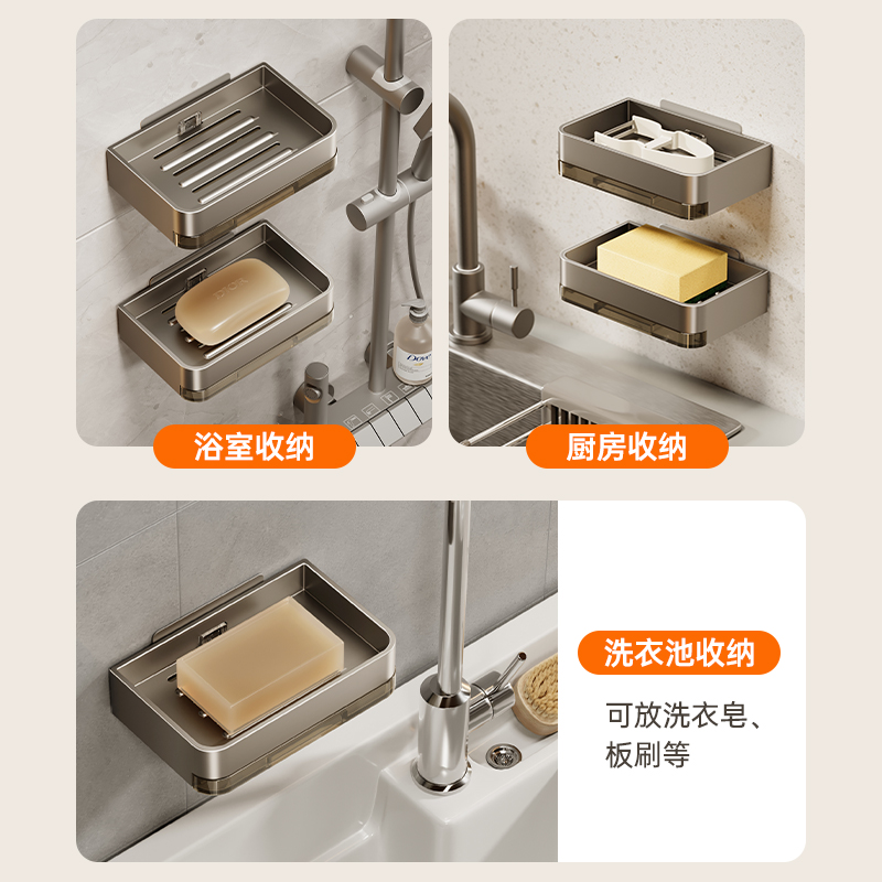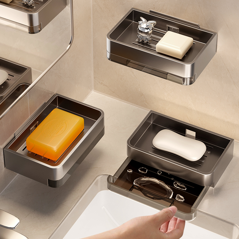 Light Extravagant Bathroom Soap Rack Metal Perforated Wall-mounted Double Layer Soap Rack Toilet Soap Box Containing Shelf-Taobao