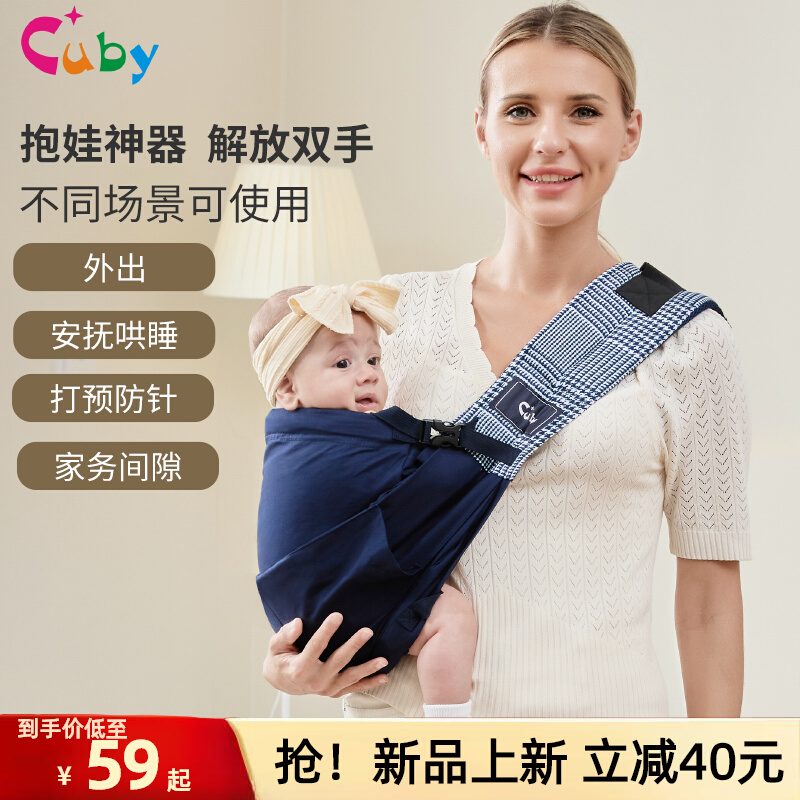 CUBY baby braces front hug horizontal hug with back towels Small month-old newborn baby out Easy Inclined Cross Huva God-Taobao