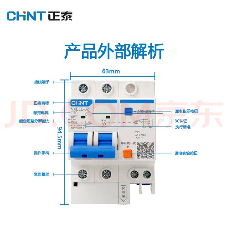 Positive Tai (CHNT) Small earth leakage protection breaker NXBLE-32-2P-C20 leaky air switch 20A-Taobao