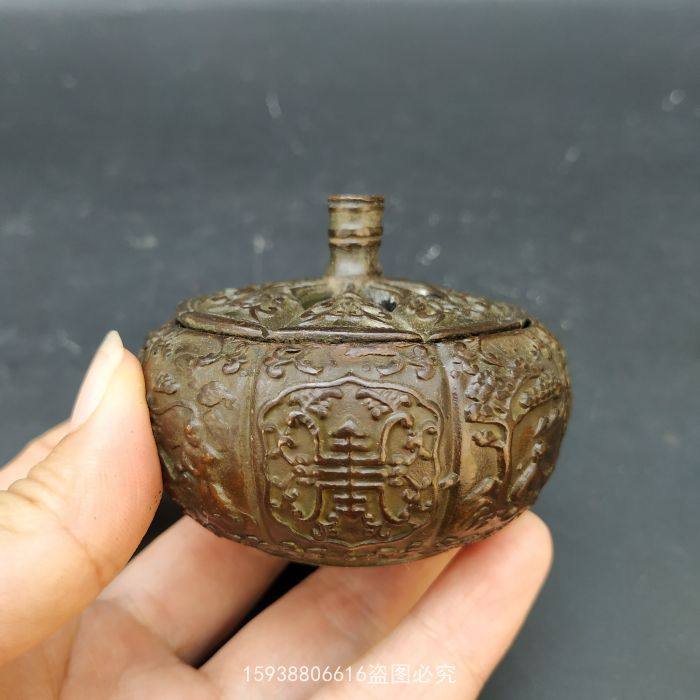 Antique Ancient Play Bronze Ware Antique Collection Alloy Imitation Pure Bronze Sushi Mini Pocket Retro Pumpkin Incense Stove-Taobao