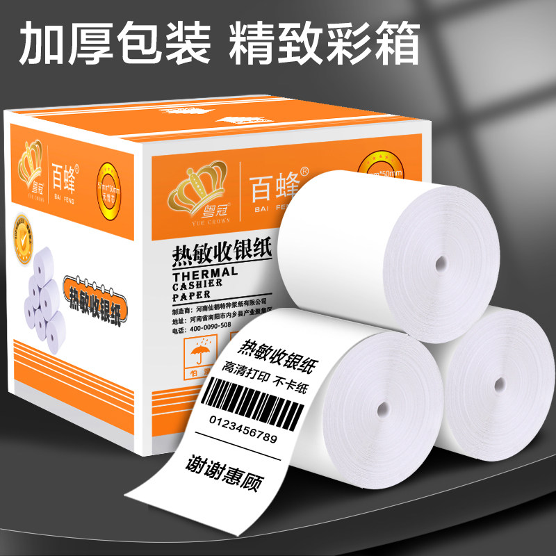 100 bee no tube core cashier paper 57 * 50 * 100 Volume whole box hot sensitive paper Form 80 * 80mm Supermarket Beauty Group Takeaway Print Roll Paper 58 Cashier 80x60x50 Restaurant Back Kitchen