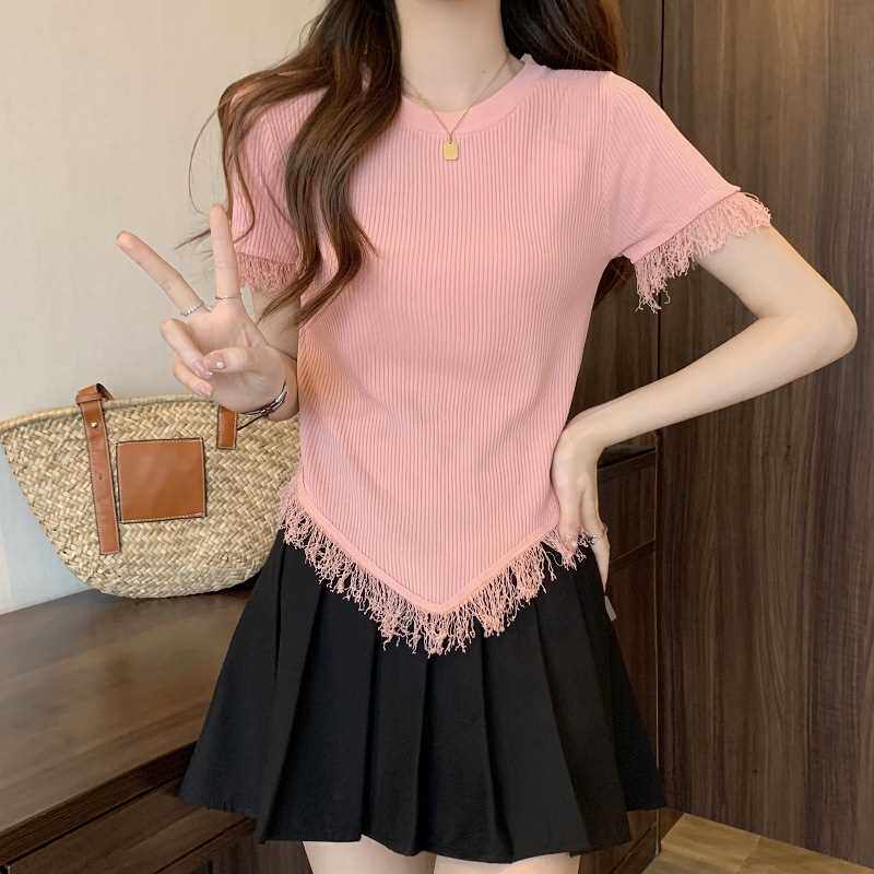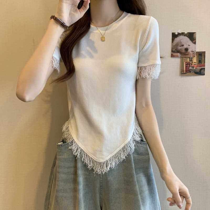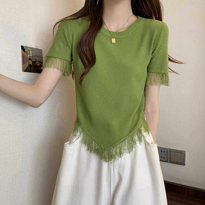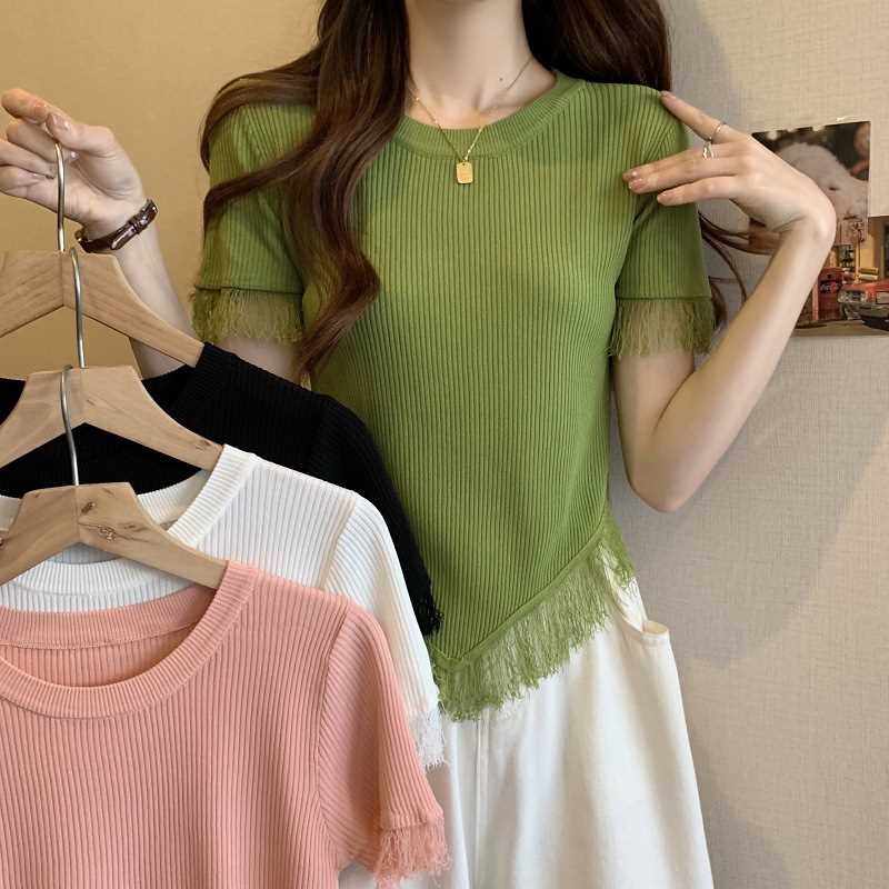 Ice Silk knitted shirt womens short sleeve irregular to-Taob