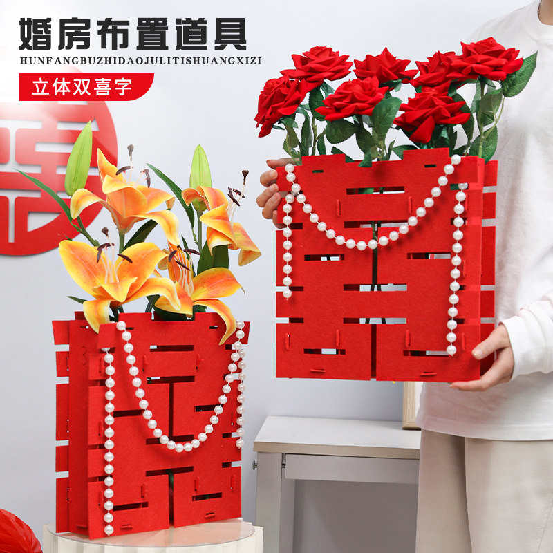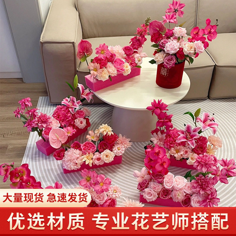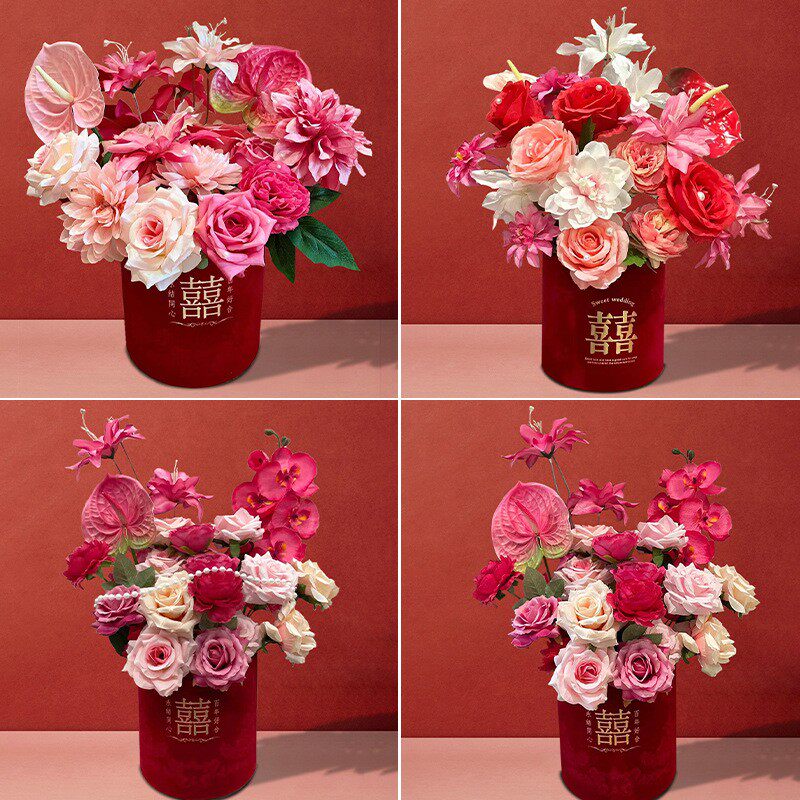 Wedding House Pendulum simulation Flower Qingknot Flower Arrangement Hugging Bucket Red New Room Living Room Decoration Floral Gift Arrangement Stereojoy-Taobao