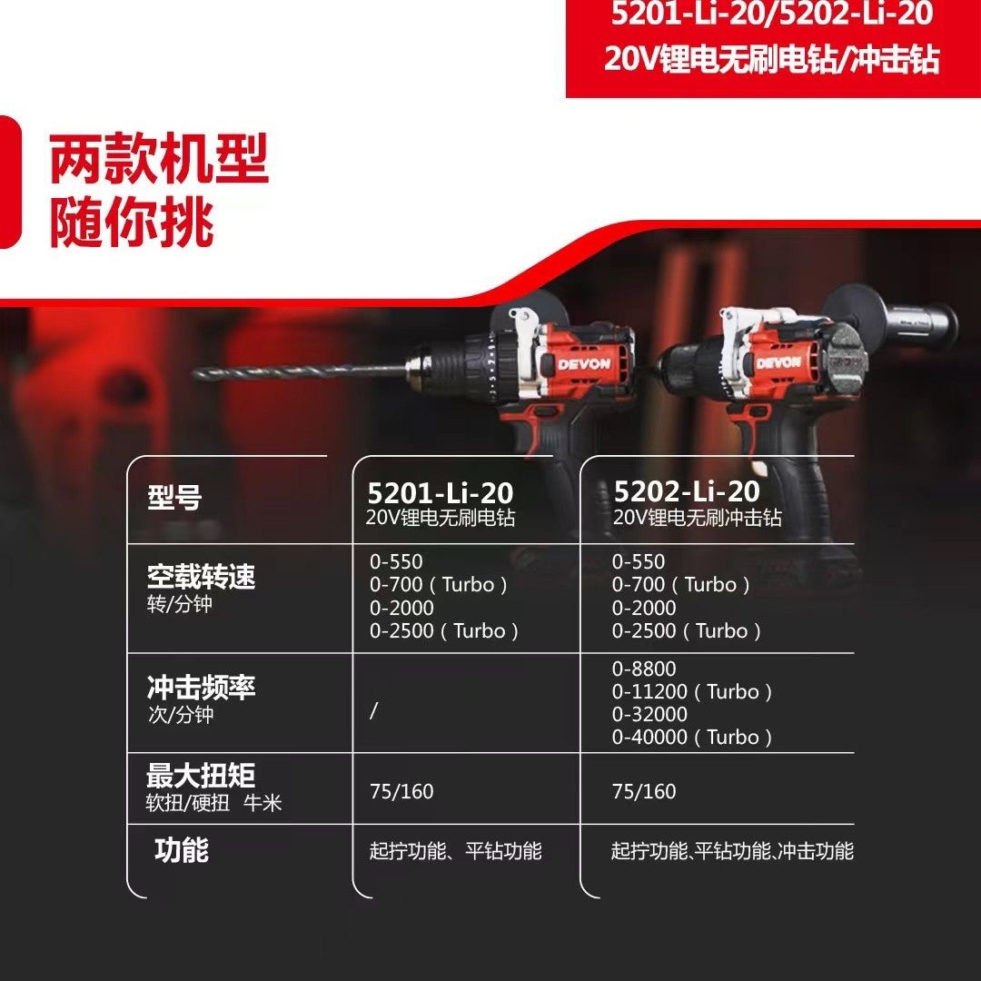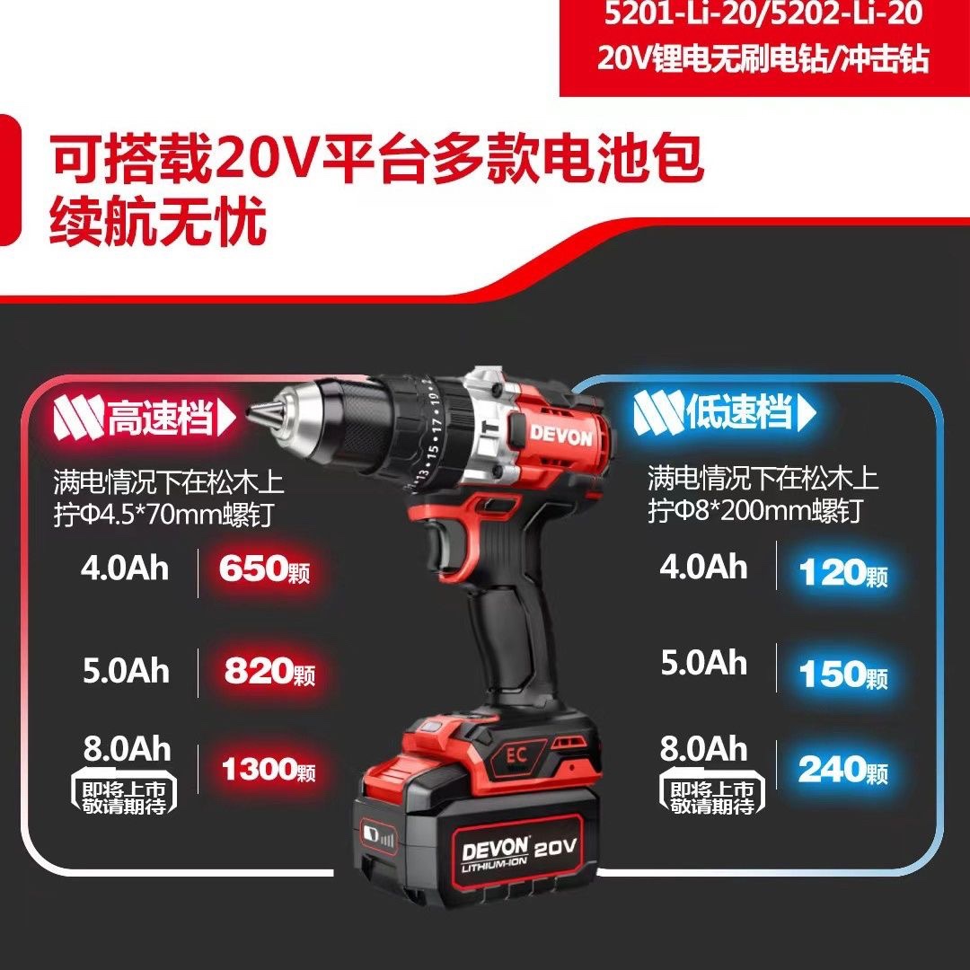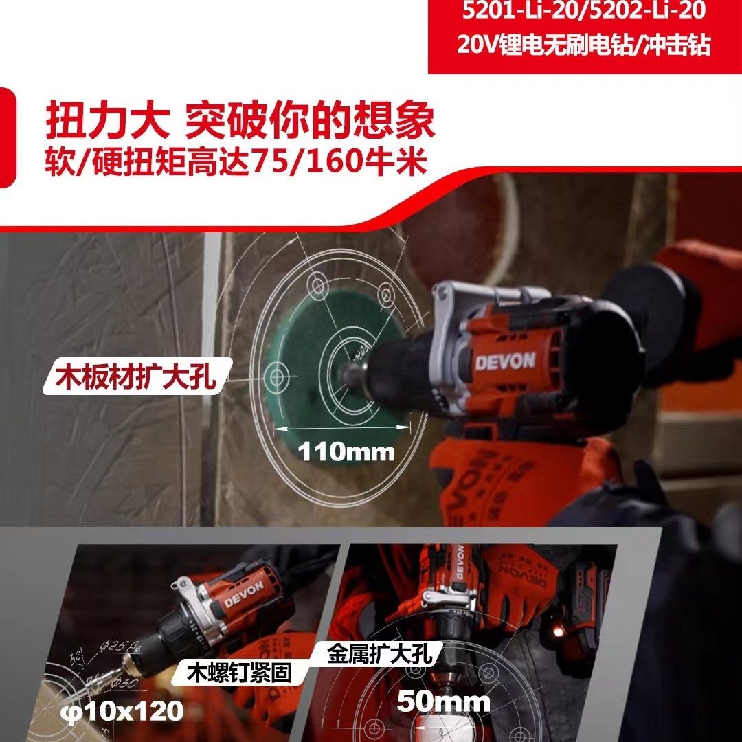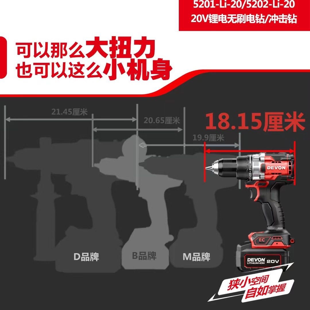 Great 20V lithium electric brushless electric drill 5201 multifunction 160 bull big torque handheld variable speed impact drill 5202 -Taobao