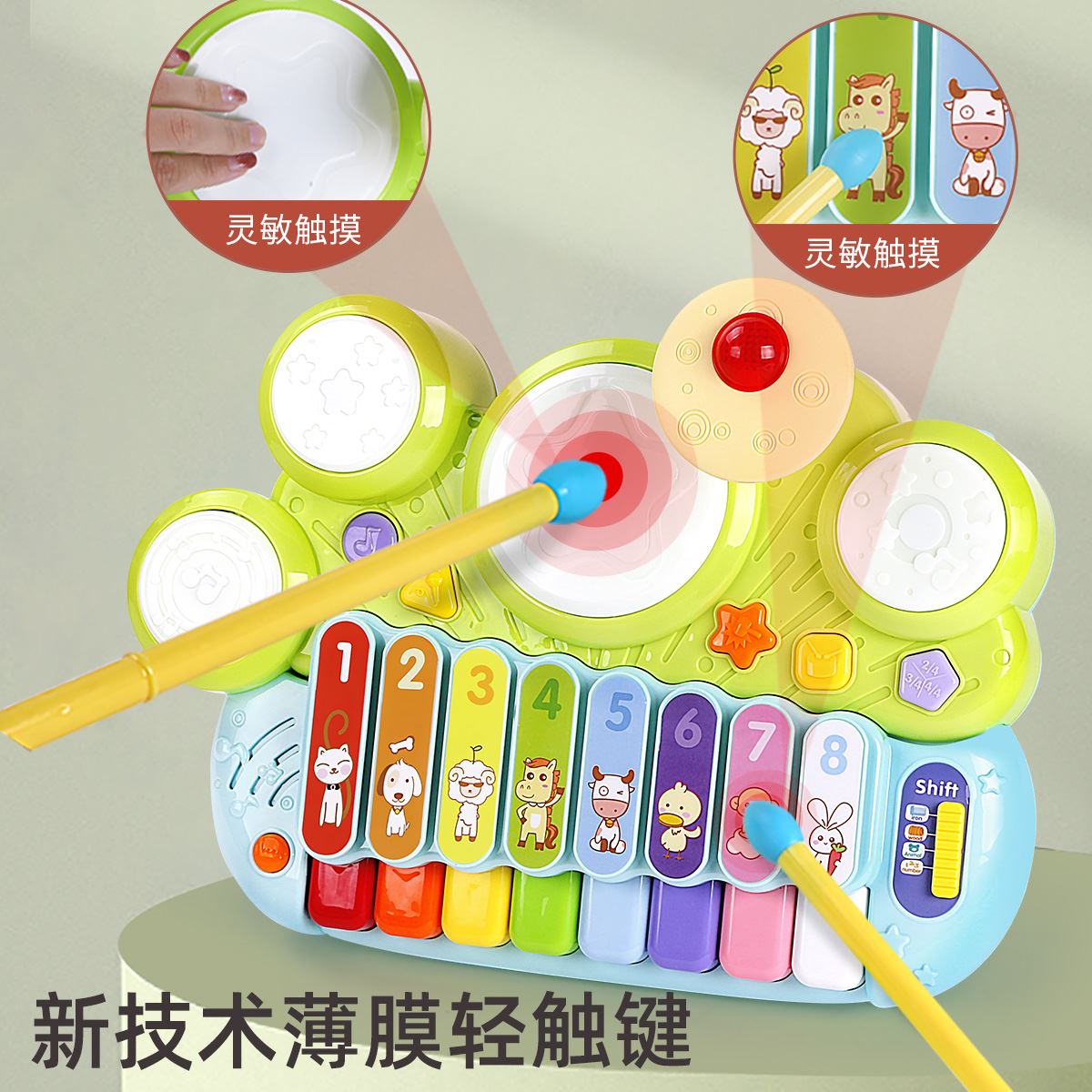 Xylophone drum (battery version) xylophone drum matching sound and sound hammer (battery version) xylophone drum matching cute cat stack cup (battery version) xylophone drum matching fox stack cup (battery version) xylophone drum matched with small giraffe (battery version)