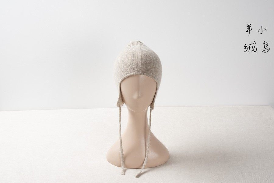 Small bird cashmere ~ practical warm small piece oat color double yarn knit cashmere hat child wind hat protective ear cap-Taobao