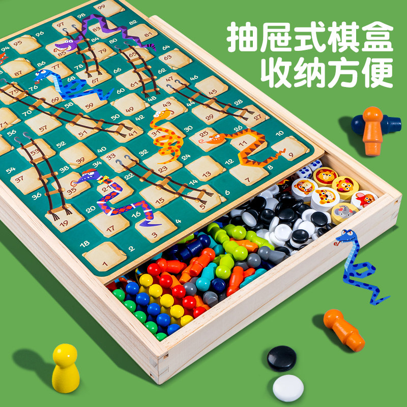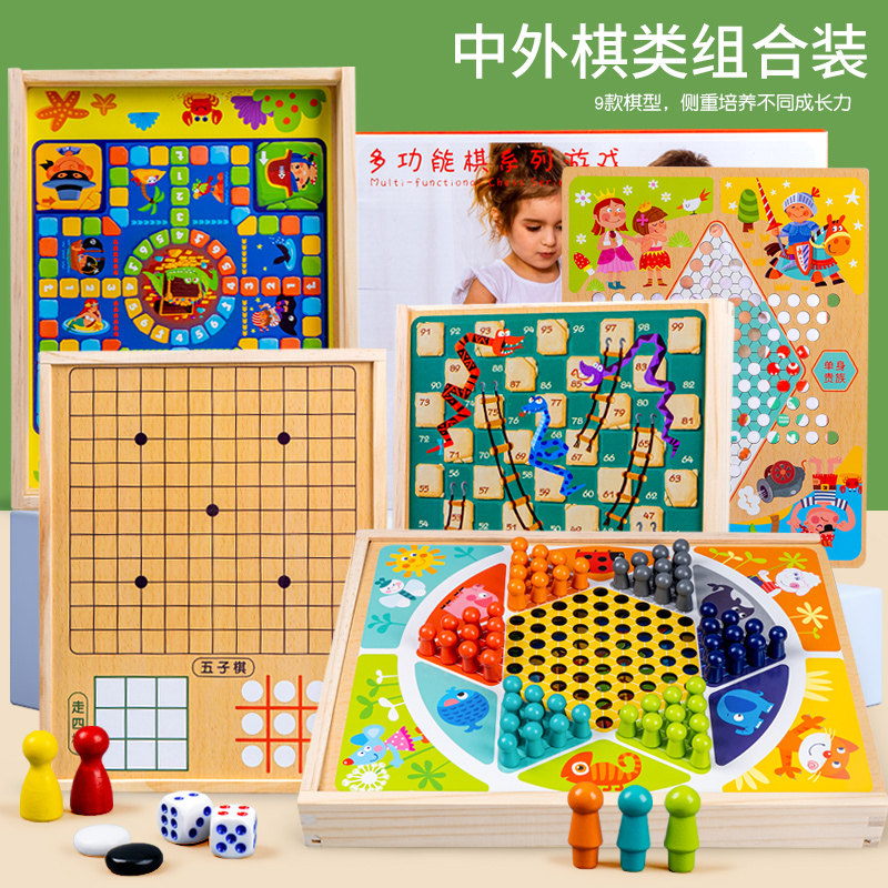 Children Elementary school children Puzzle Toys Wooden five Flying Bucket of Toy Chess Pick Chess Multi-Function Gaming Chessboard-Taobao