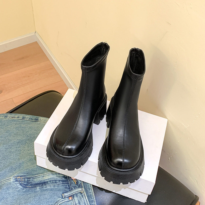 LE QIAN ~ (gush recommended) thick bottom Inlenty wind Martin boots new retro short boots thick heel skinny boots-Taobao
