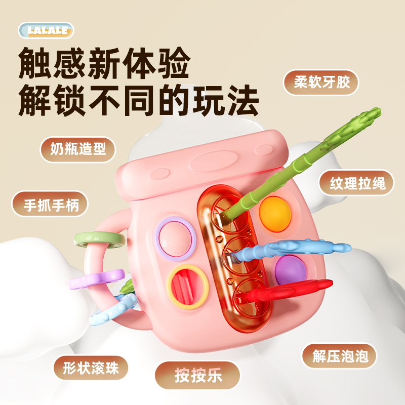 Milk bottle Larlesle 0-1 years old puzzle early to teach baby 6 months A child crammy Enlightenment baby rocking the bell toy-Taobao