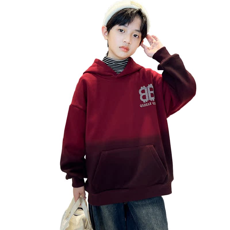 Boy's sweatshirt gradient color warm jacket with cap 2023 new autumn winter net red tide Han version Nehitch-Taobao