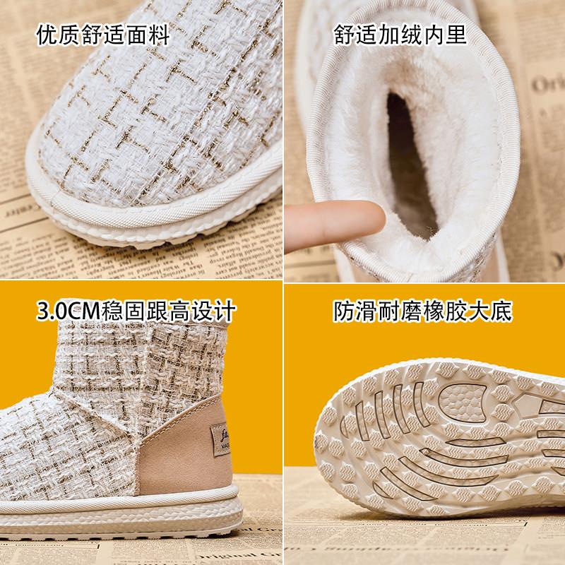 Small Fragrance Snowstorm Boots Woman 2023 New Winter Ocean Gas Plus Suede Thickening Short-Warm Waterproof Anti-Slip Cotton Shoes-Taobao
