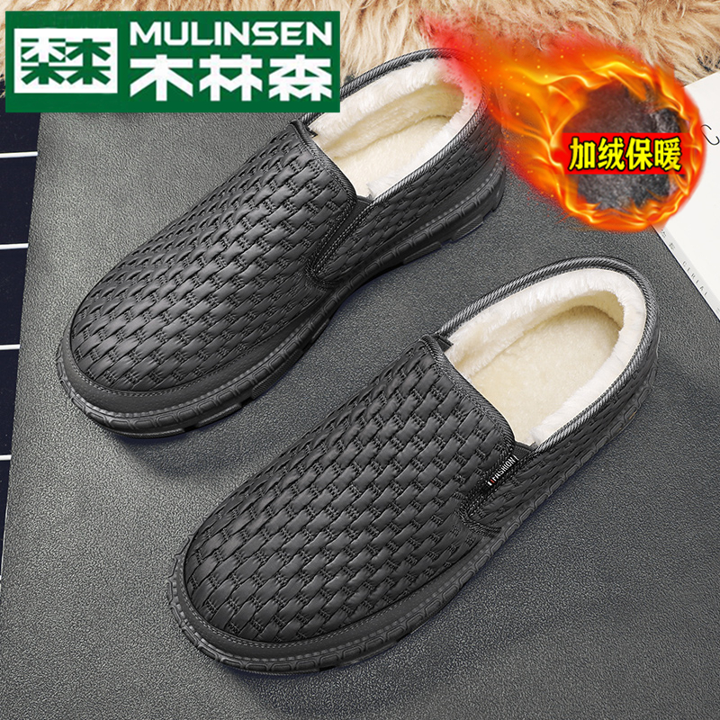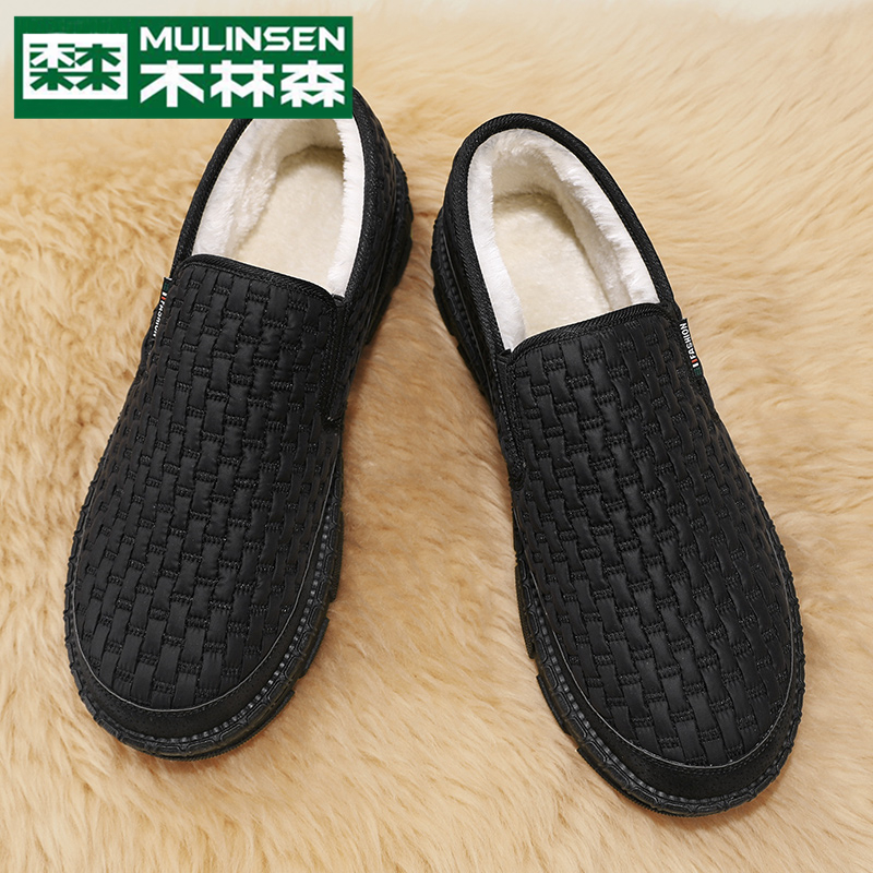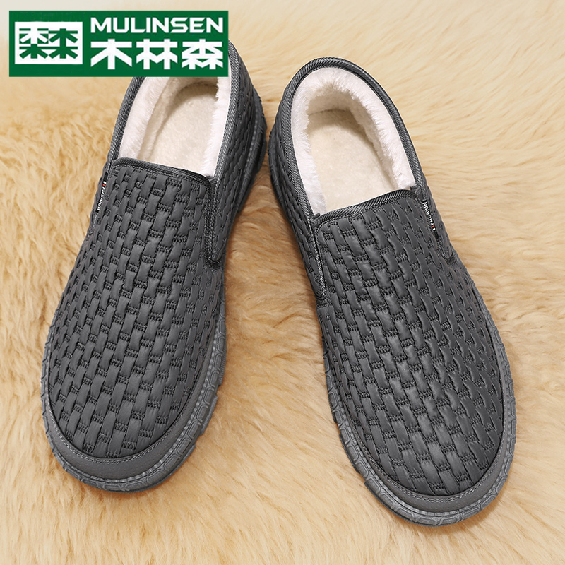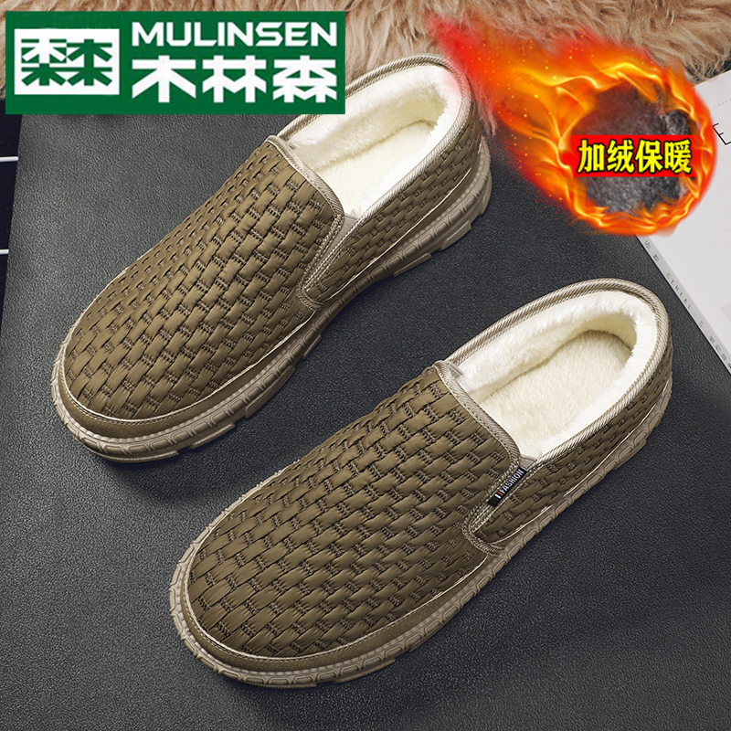 Wood Linson Canvas Winter Bean Bean Shoes Men Cotton Shoes Gush Warm a foot pedal No Laces Sloth to drive a foot-Taobao