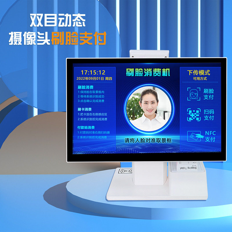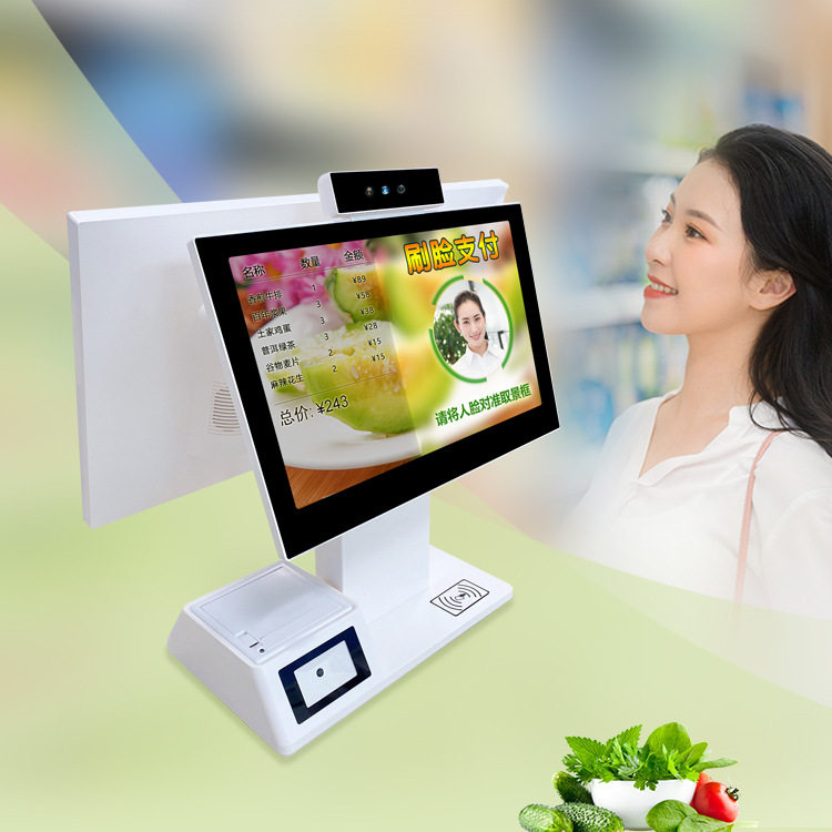 Foreign Trade Outlet New Double Screen 15 6 Inch Silver Machine Printer Sweep Code Window NFC Camera Face Payment-Taobao
