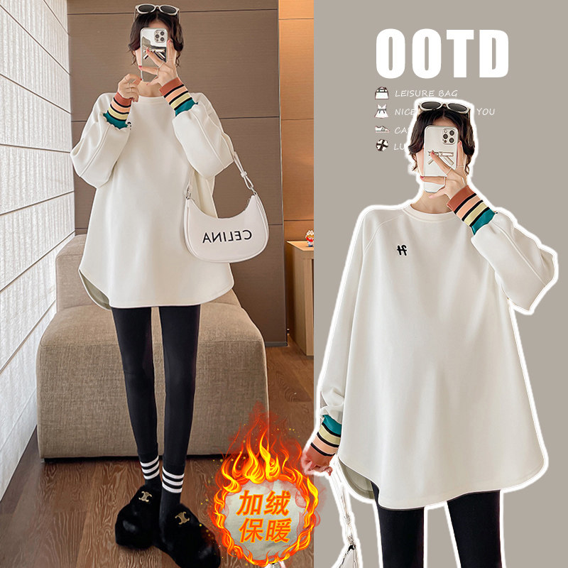 Large code pregnant women's clothing autumn winter clothing with long style and fashion plus velvety undershirt blouses woman covered with 200 catties-Taobao