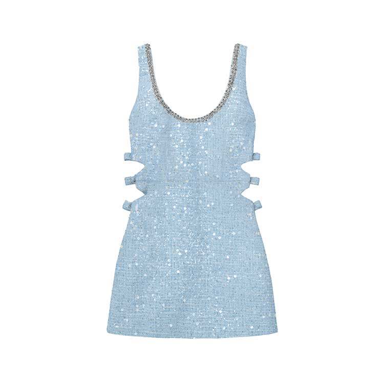 self-portrait 2024 Early spring thin mist Blue bright sheet Diamond Decorated With Shiny Side Harnesses with dress Short skirts-Taobao