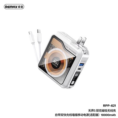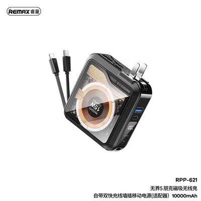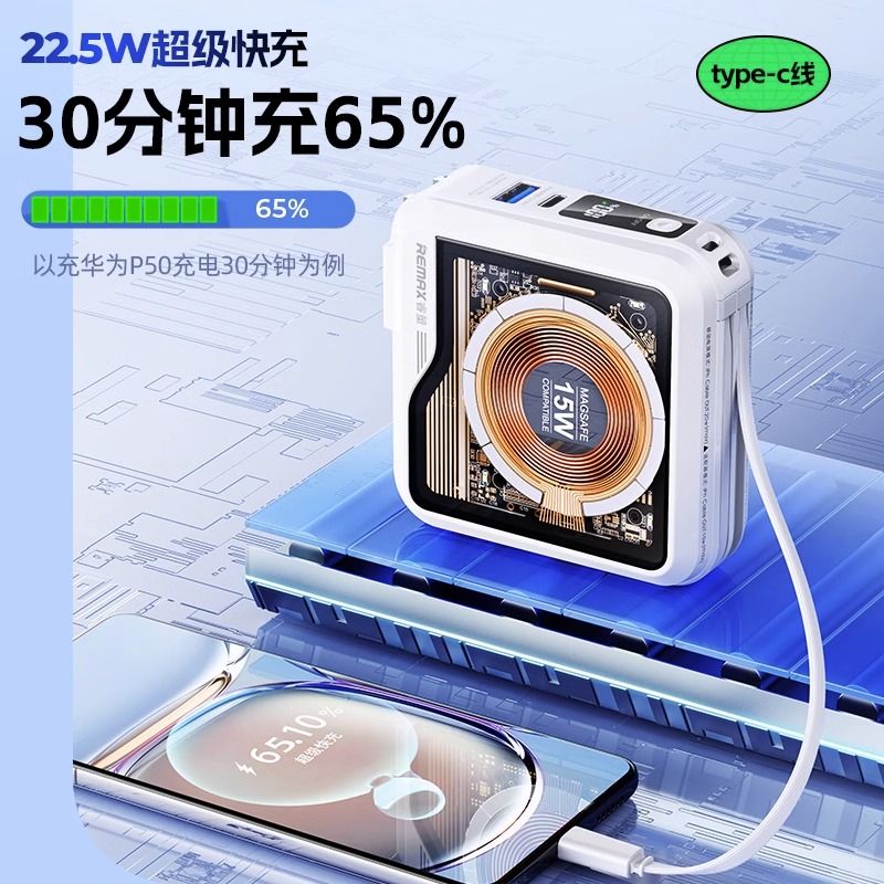 REMAX Wise magnetic suction wireless charging with double fast charging line wall inserts 10000 mAh large capacity mobile power supply-Taobao