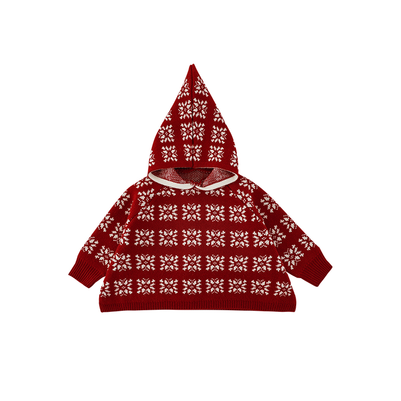 Young Yo-yo Girl Christmas Day Design Snowflake Jacquard Warm Sweater Children Tips Magic Witch Lian Hat Cape-Taobao
