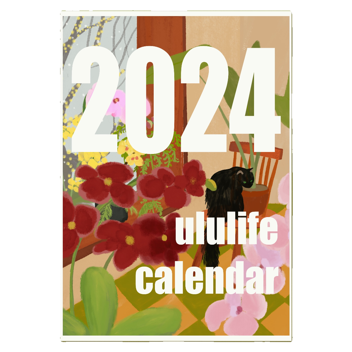 With deer 2024 illustrator 42 * 30cm large year calendar 31cm beech wood hanging shaft a large year calendar A3 teak wood color picture frame one with deer 2024 illustrator Little New Year's calendar 2