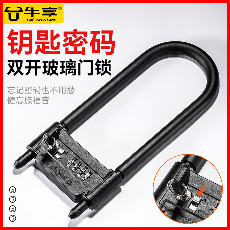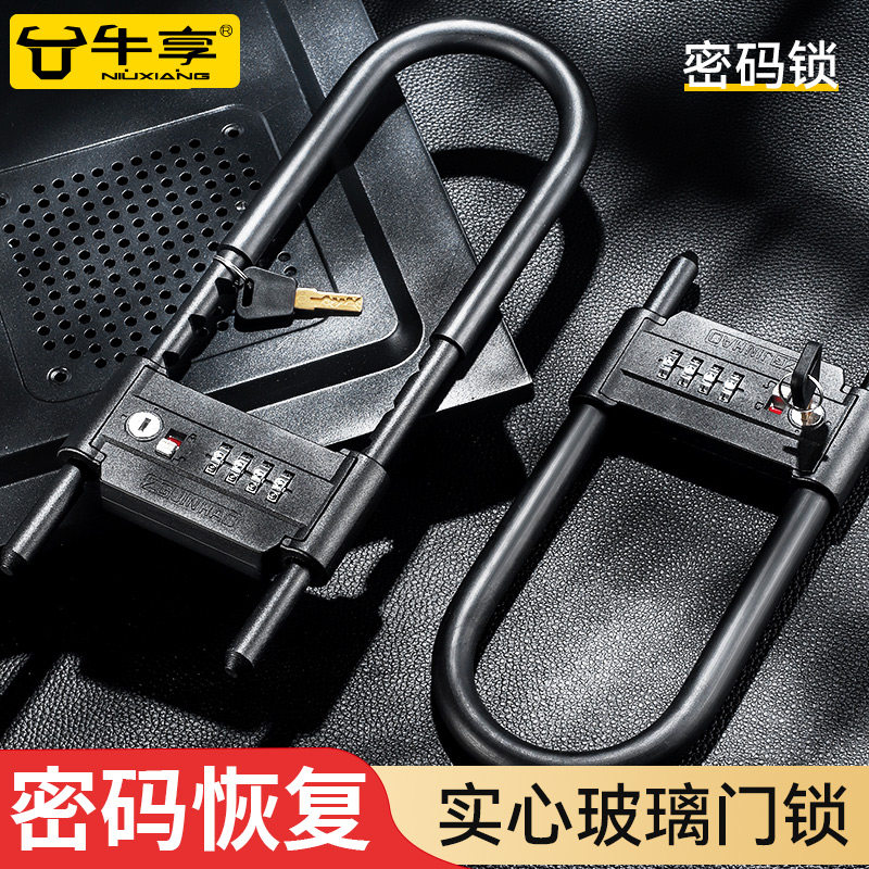 Code lock glass door lock push Ramen U type lock home burglar-proof padlock U shape storefront double door lengthened insert lock-Taobao