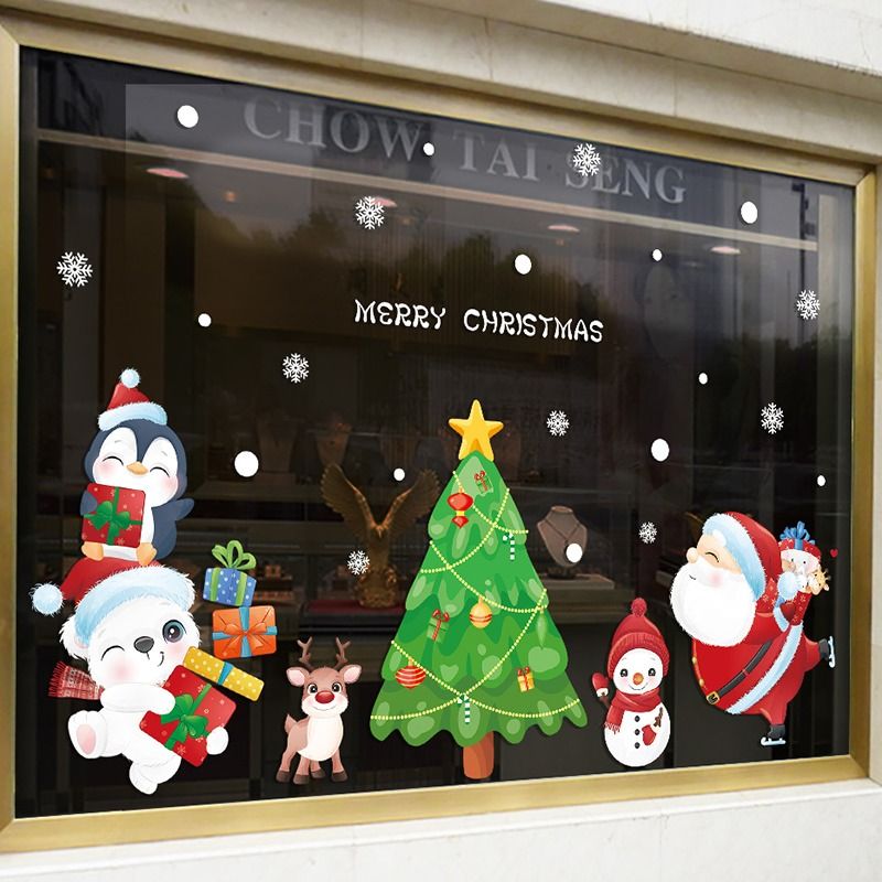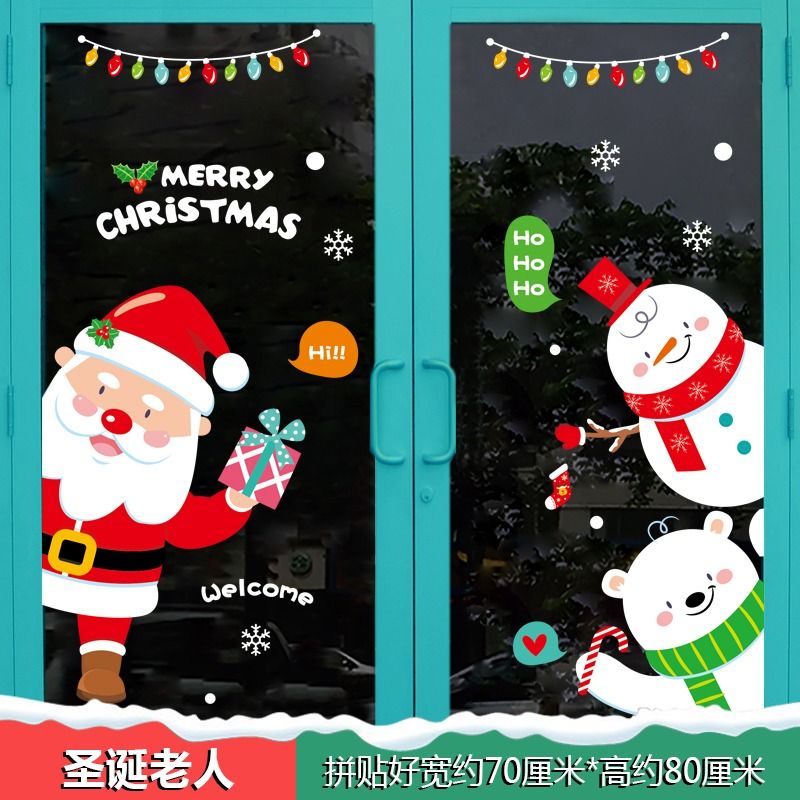 Christmas Decorations Stickers Glass Stickers Mall restaurant scene Placement wall stickup Santa Claus sticker pictorial-Taobao