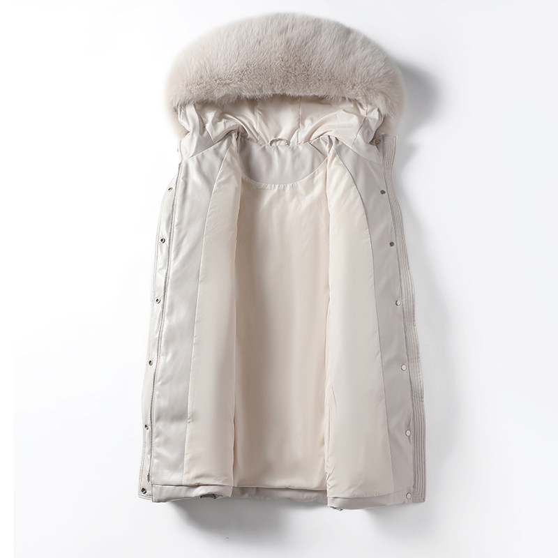 Henning genuine leather fur coat duvet jacket woman mid-length sheep leather 2023 new winter small sub-fox fur coat-Taobao
