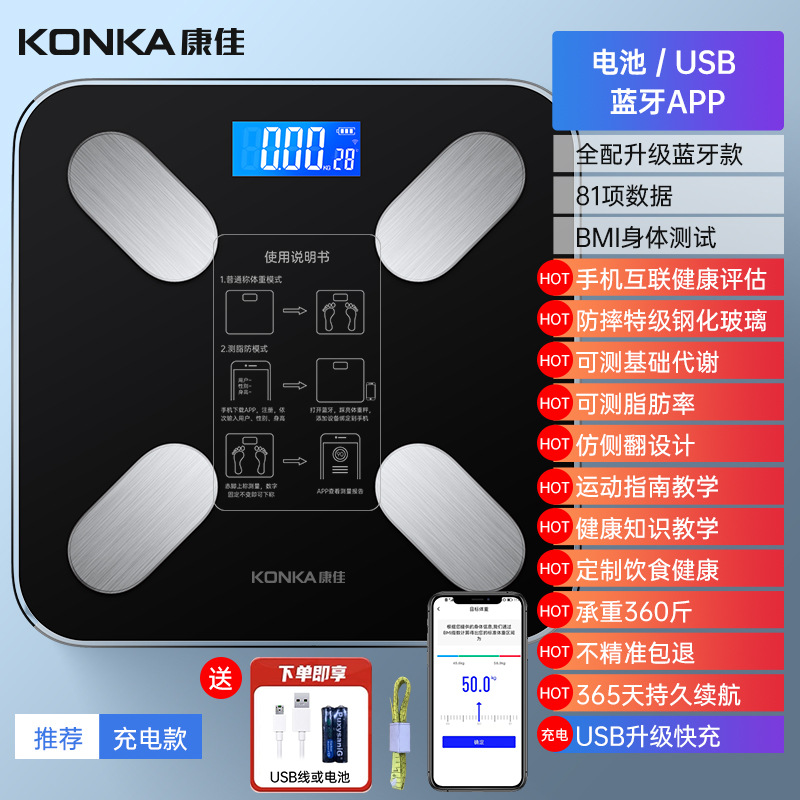 KangJia Weight Libra Home Small Accuracy Body Fat Scales Durable Charging Smart Bluetooth Human Body Fat Electronic Scale-Taobao