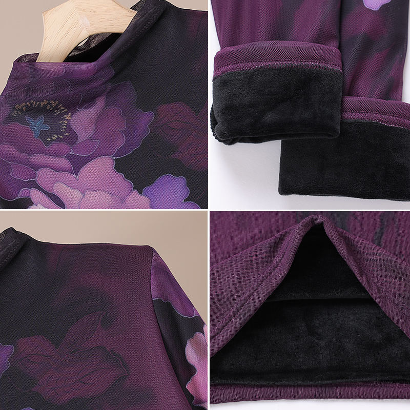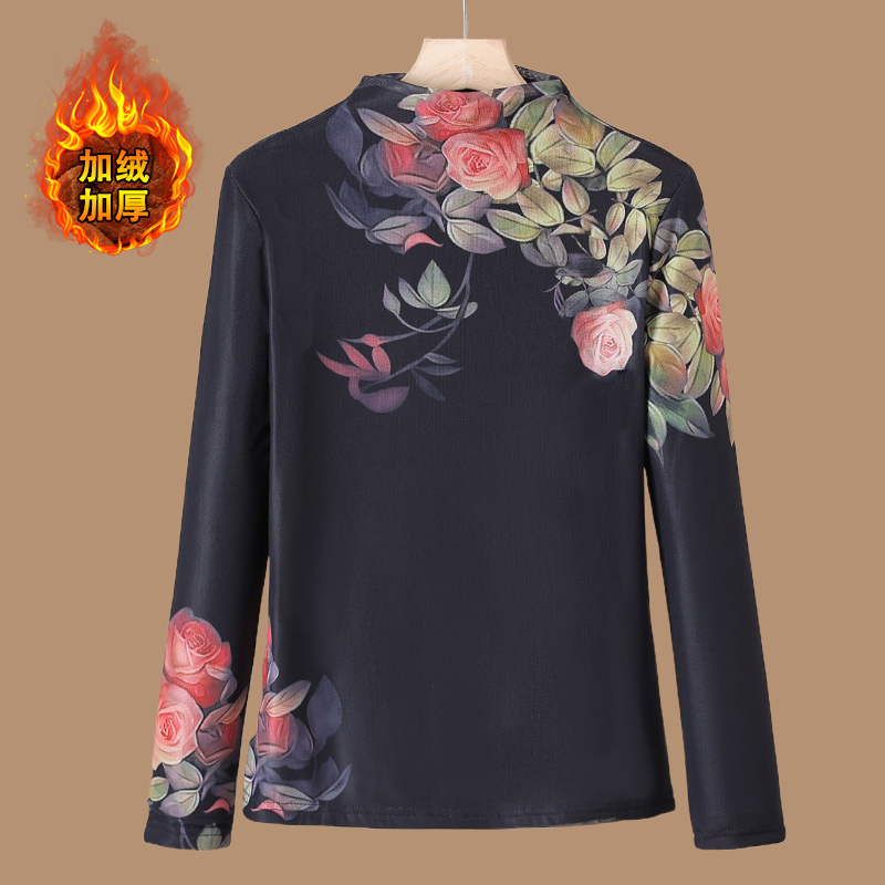 Mom autumn winter plus suede thickened with undershirt new middle aged woman inner lap long sleeve half high collar warm t-shirt blouses-Taobao