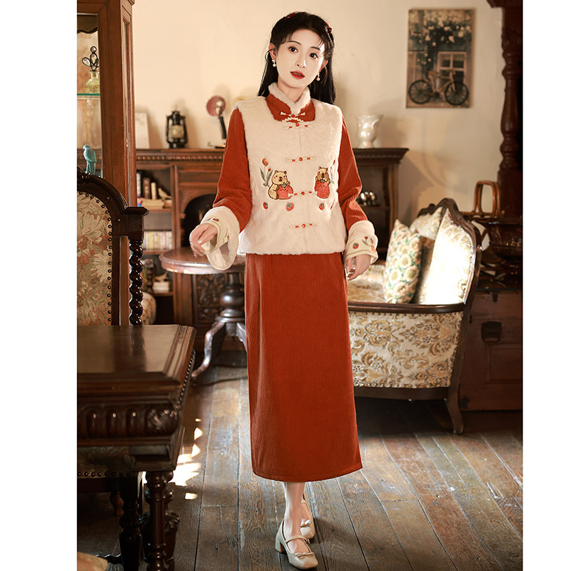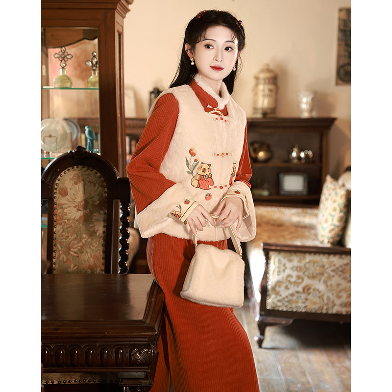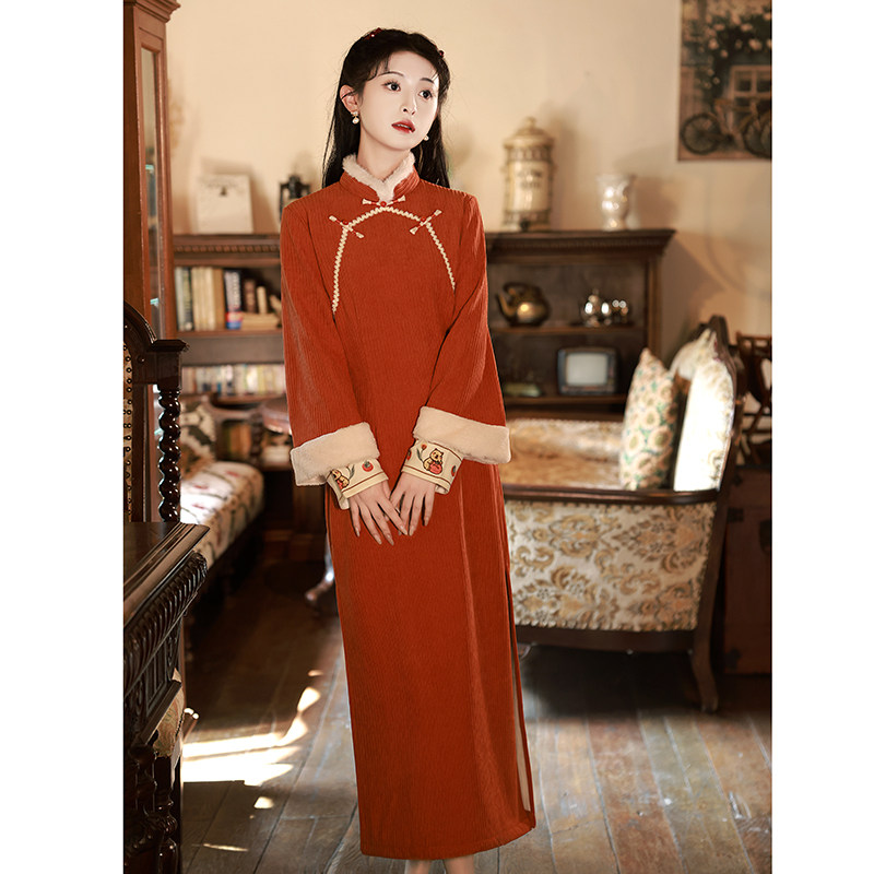 Winter qipao 2023 new autumn and winter long sleeves Thickened Warm Horse Chia Suit Cute Beiyen-fu woman Dowsuit-Taobao