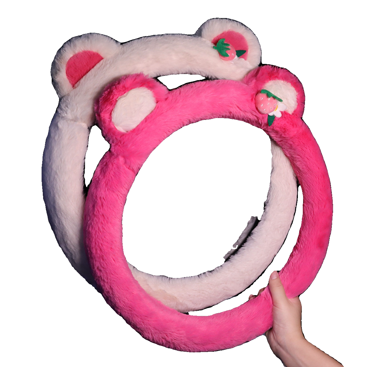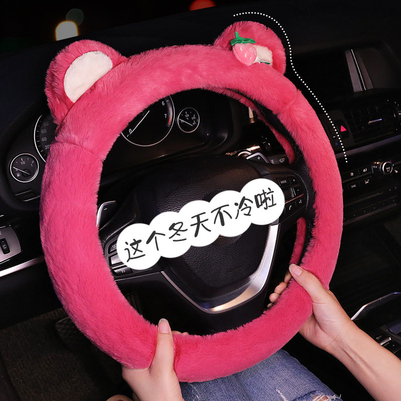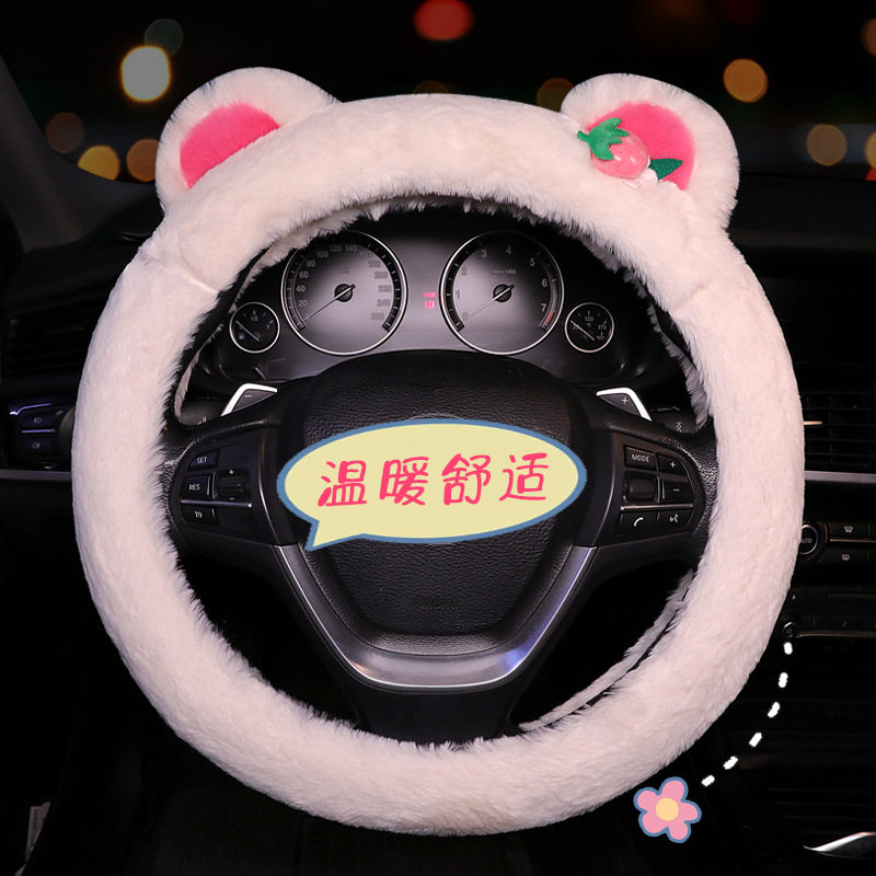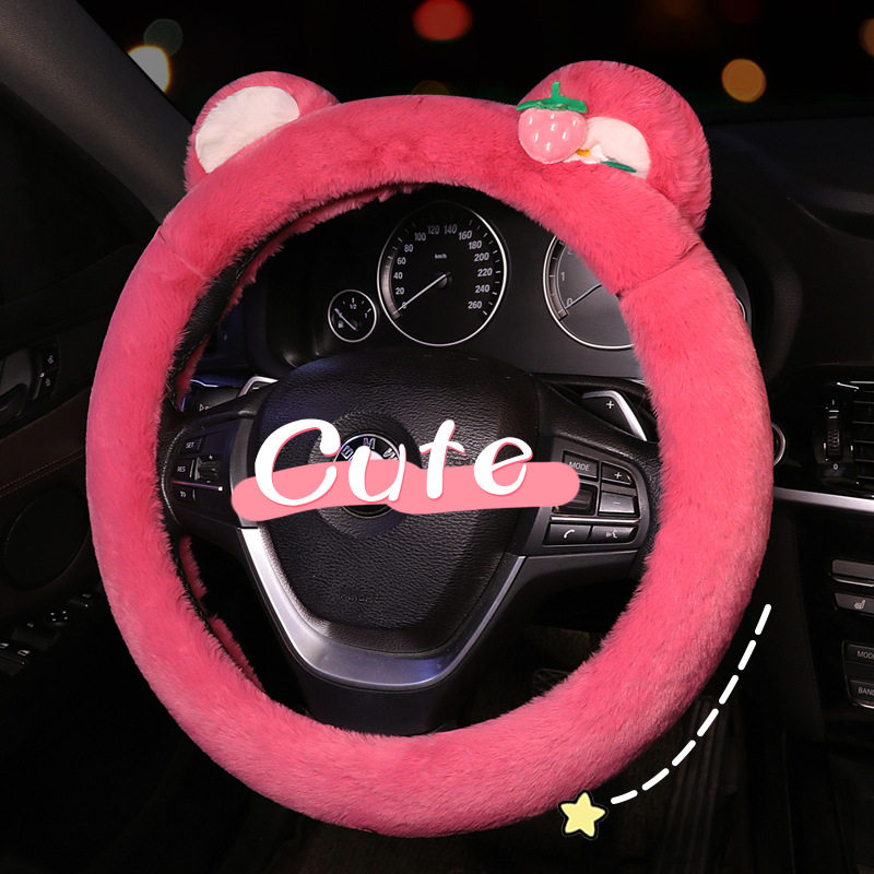 2023 new autumn and winter cute plush steering wheel cover strawberry bear cartoon net red universal warm non-slip-Taobao