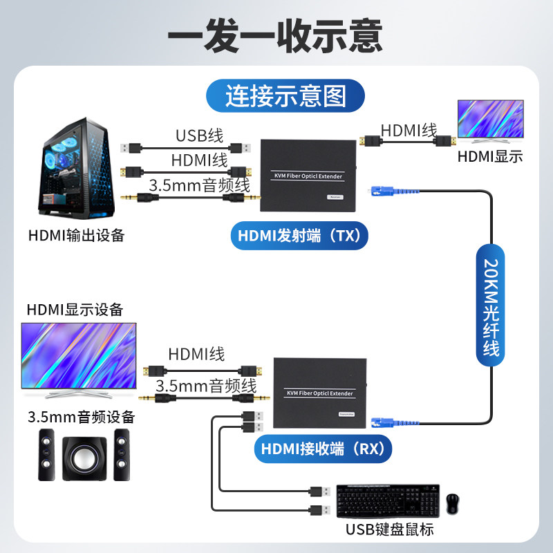 Akas HDMI Optical Transceiver KVM Fiber Transceiver with key Mouse lip HD 1080P Audio and video Optical Cable Extension converter 20KM over optical switch Long distance Transport-Taob