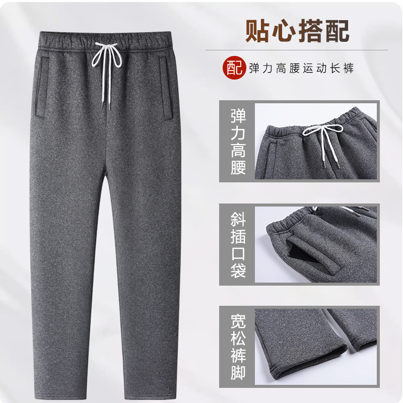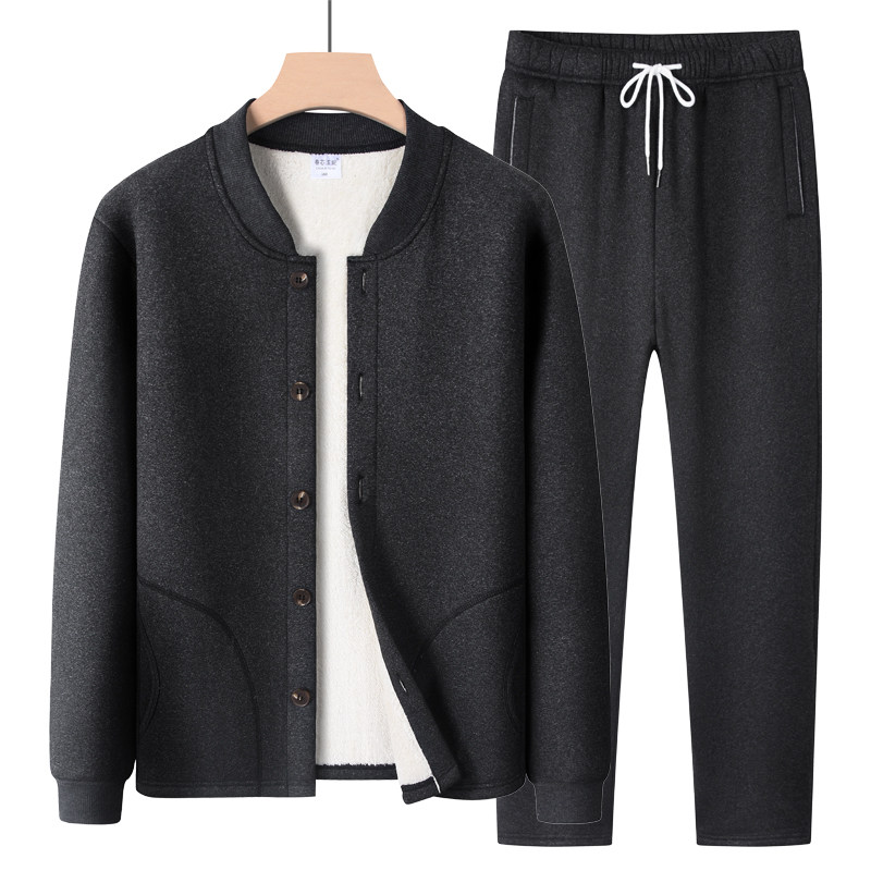 Extractable wearing a lamb suede thermal underwear suit men plus suede thickened grandpa cardio-hoodie elderly dad cotton clothes-Taobao