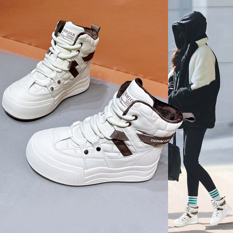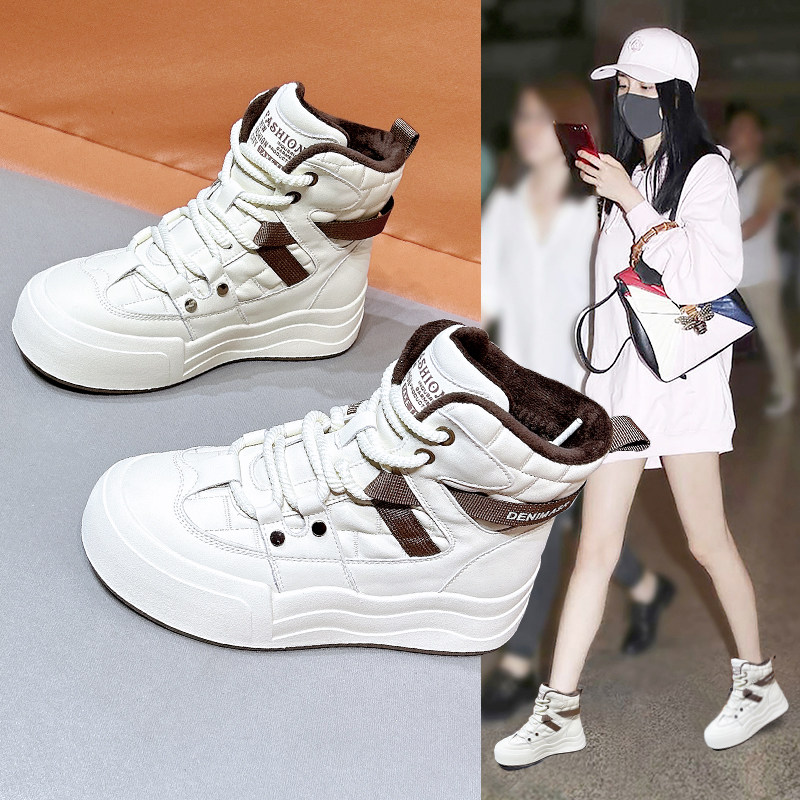 High Bunch Cotton Shoes Women Winter Plus Suede Women Shoes Waterproof Non-slip Snow Ground Boots 2023 new sports genuine leather small white shoes-Taobao